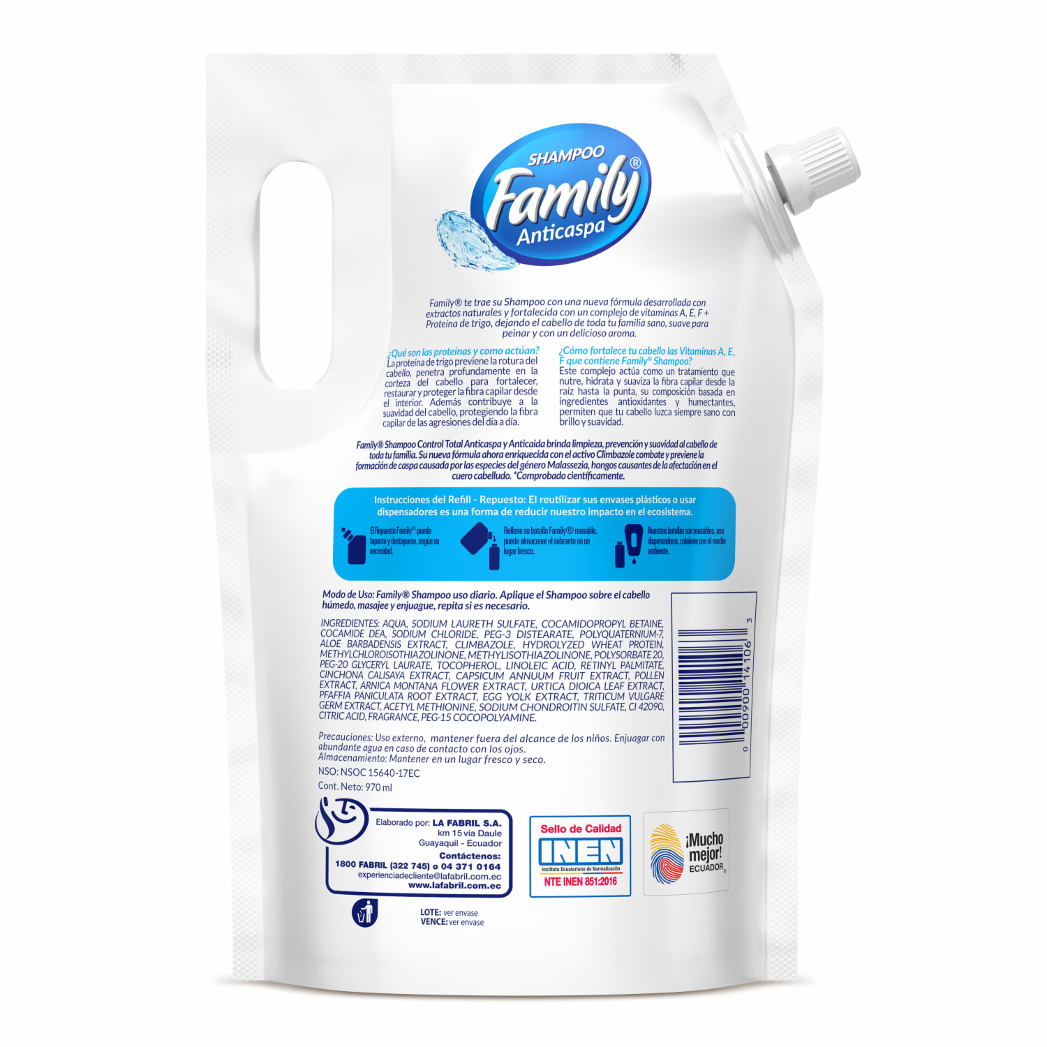 - Shampoo Family, Variante Anticaspa, Con Su Nueva Formula Con Vitaminas Y Proteínas Previene Y Ayuda A Controlar La Caspa, Proporcionando Mayor Resistencia E Hidratación