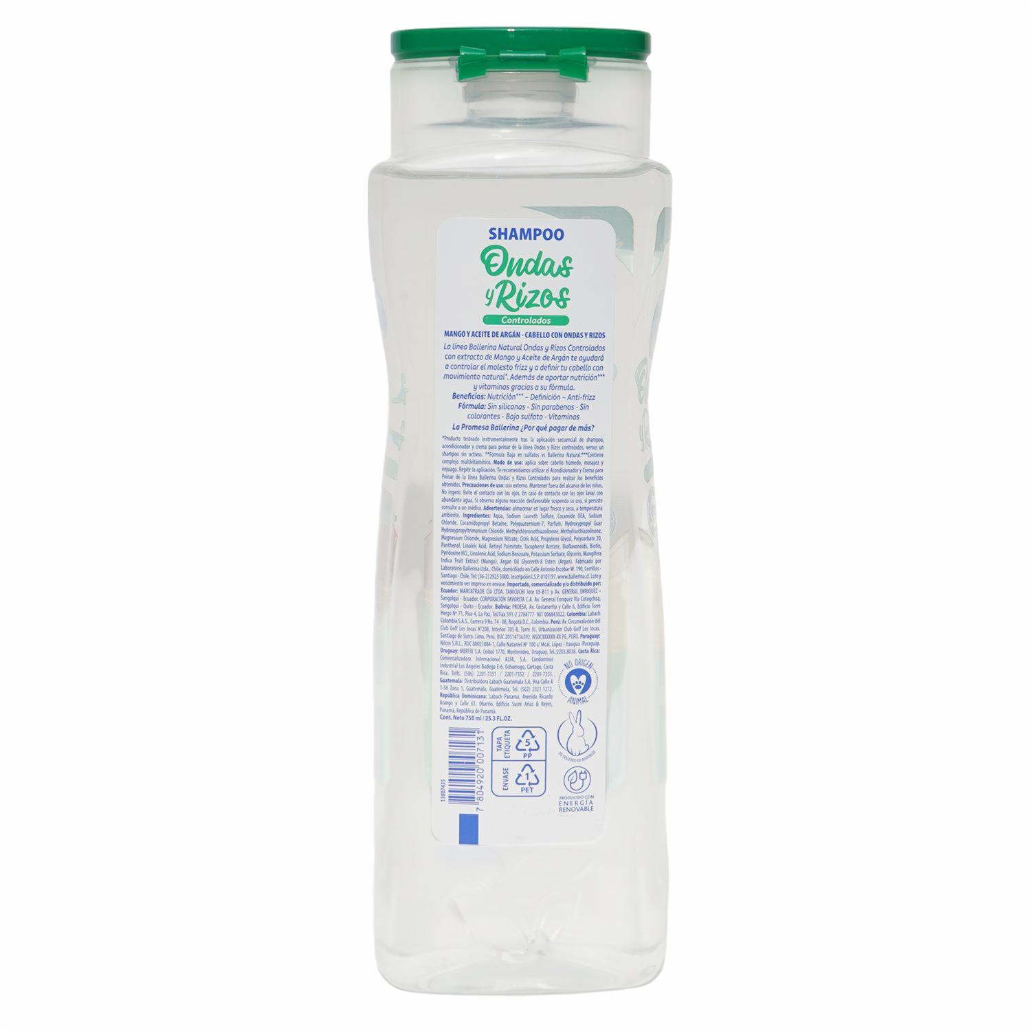 Shampoo De Cabello Ondas Y Rizos Controlados BALLERINA 750 Ml