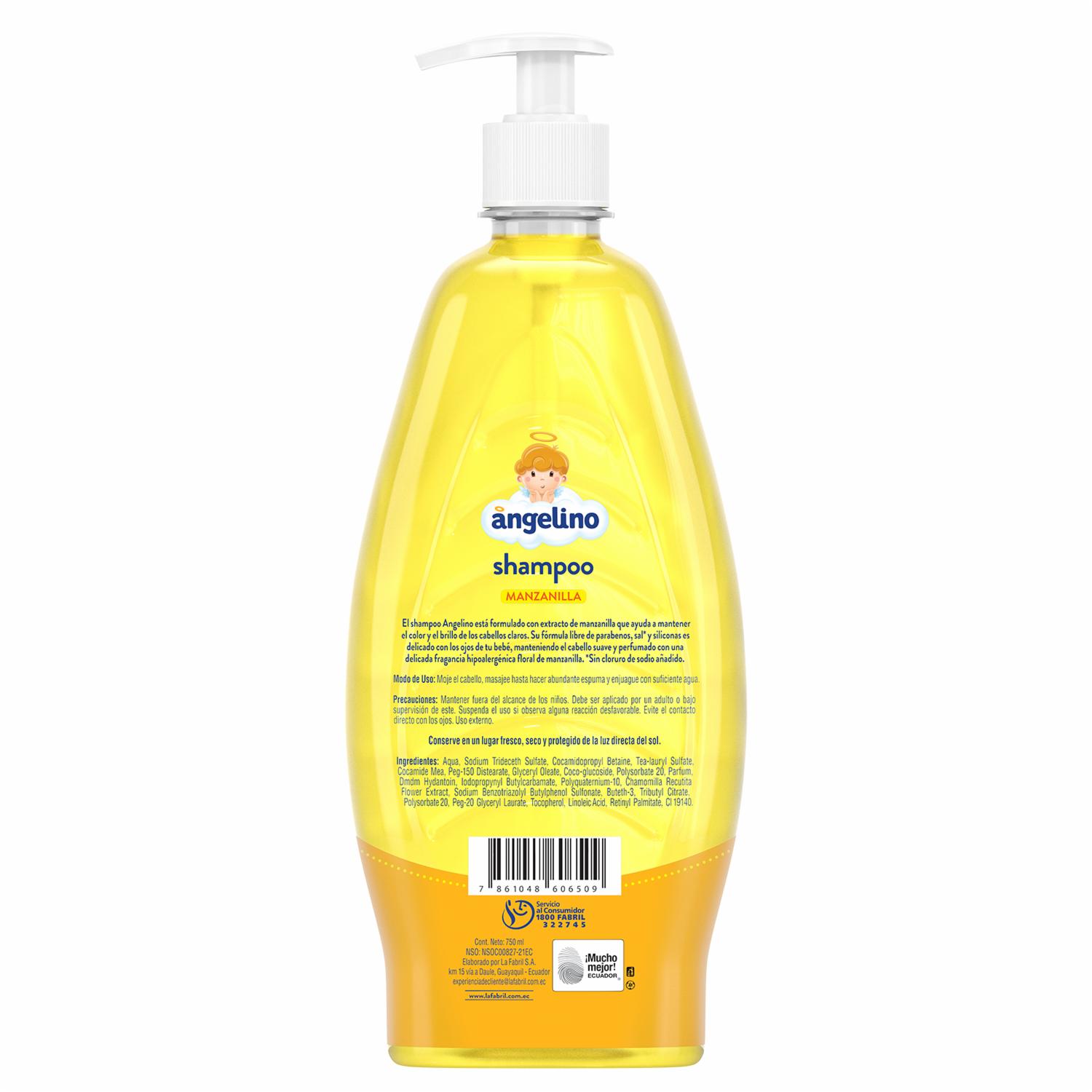 Shampoo De Manzanilla ANGELINO 750 Ml – ANGELINO. Disponible en nuestros locales. Precio y stock pueden variar según la tienda.