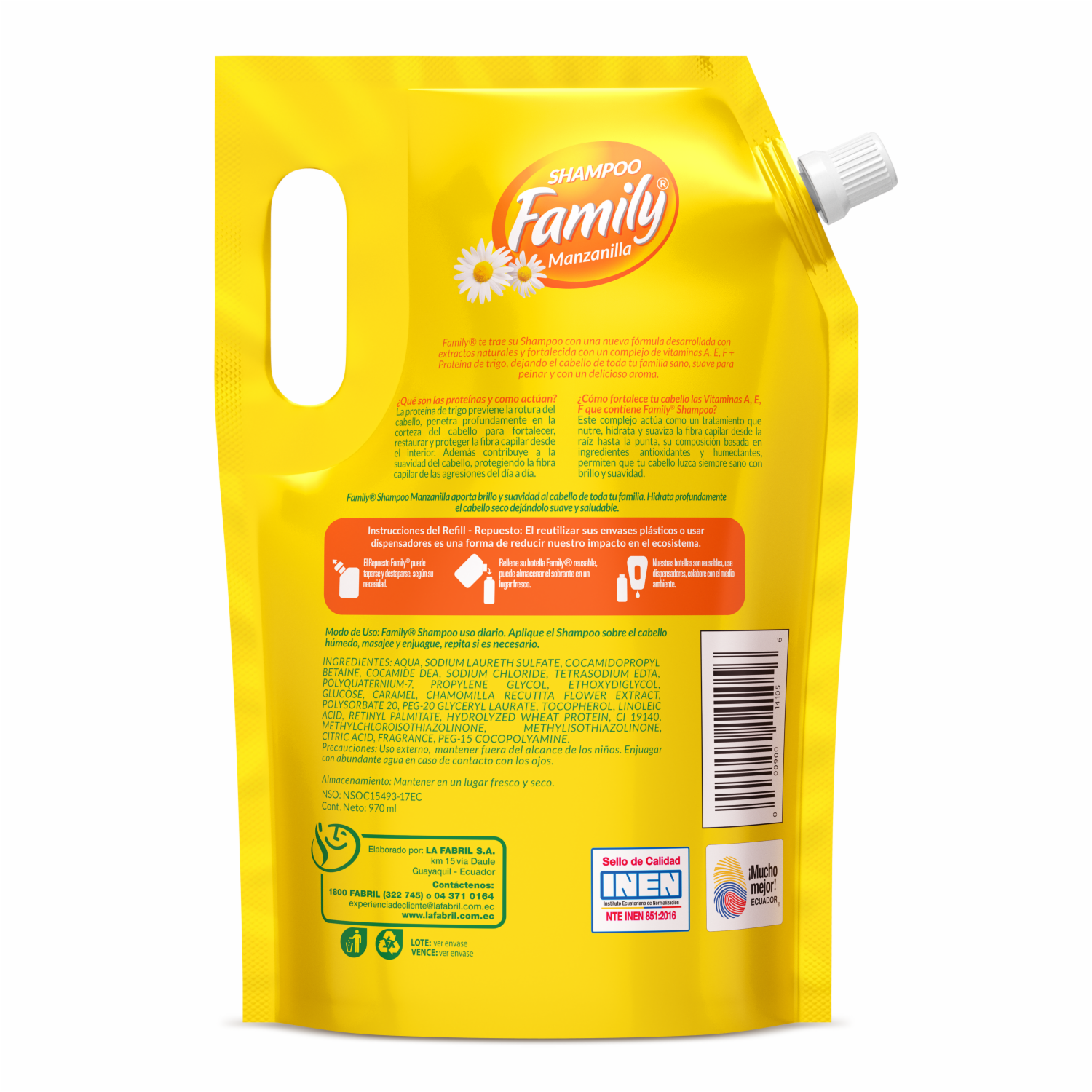 Shampoo De Cabello De Manzanilla Doy Pack FAMILY 970 Ml