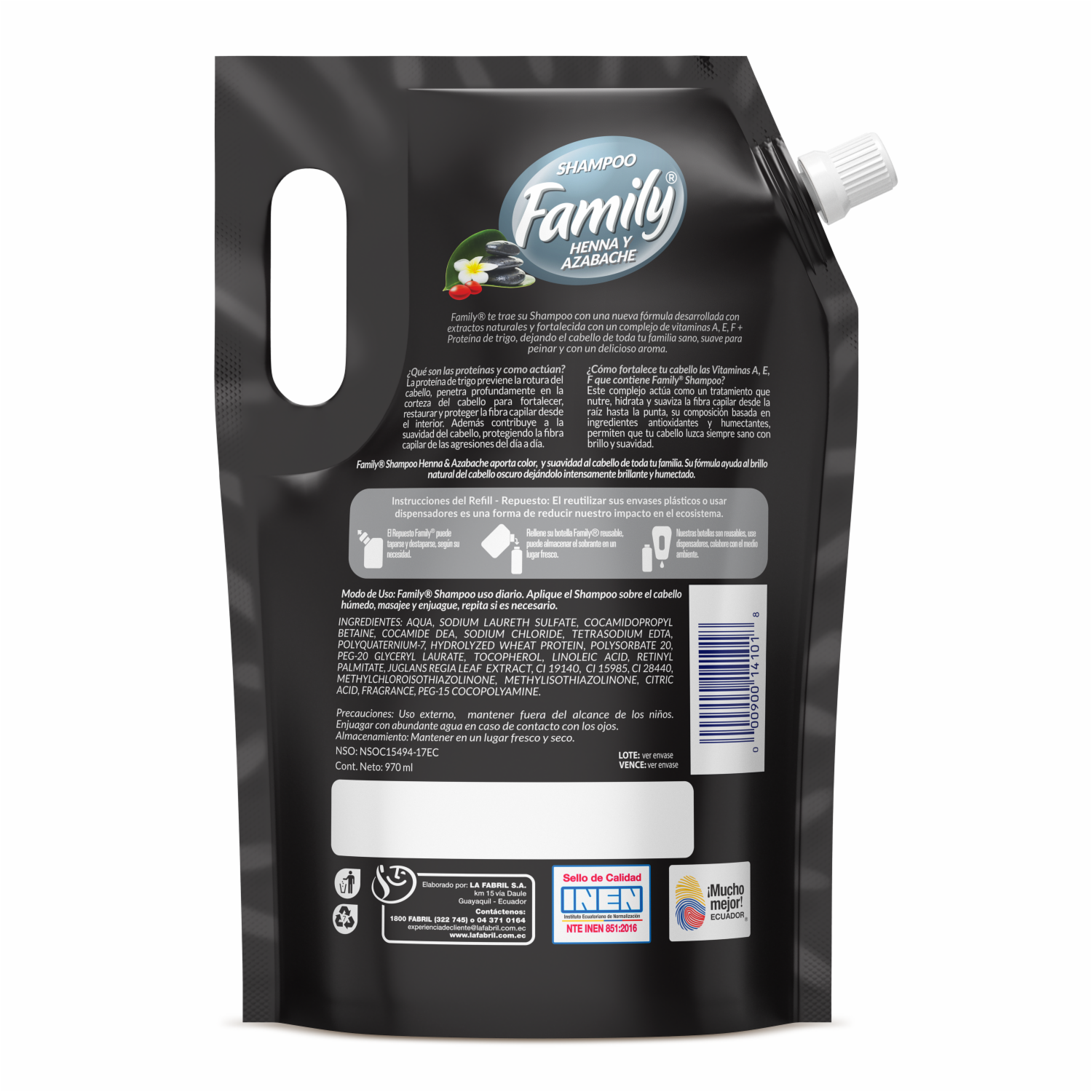 Shampoo De Cabello Henna Y Azabache FAMILY 970 Ml – FAMILY. Disponible en nuestros locales. Precio y stock pueden variar según la tienda.
