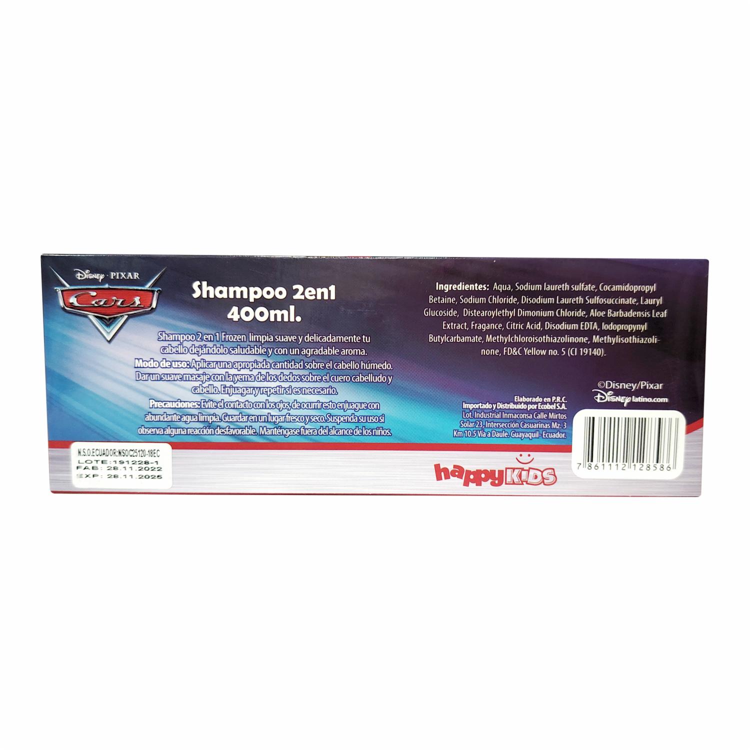 - Cars 3D Shampoo 2 en 1 limpia y acondiciona el cabello en un solo paso, con una fórmula suave ideal para niños