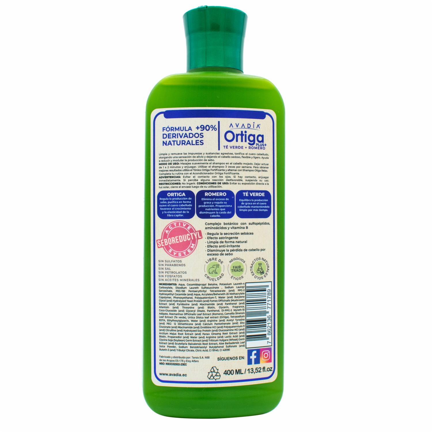 Shampoo De Cabello Ortiga Plus Anticaída Seboregulador Trichogen, Ortiga, Te Verde Y Romero AVADÍA 400 Ml