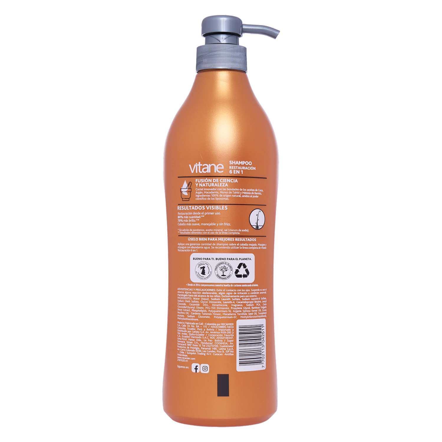 Shampoo De Cabello Restauración 6en1 VITANE 1000 Ml – VITANE. Disponible en nuestros locales. Precio y stock pueden variar según la tienda.