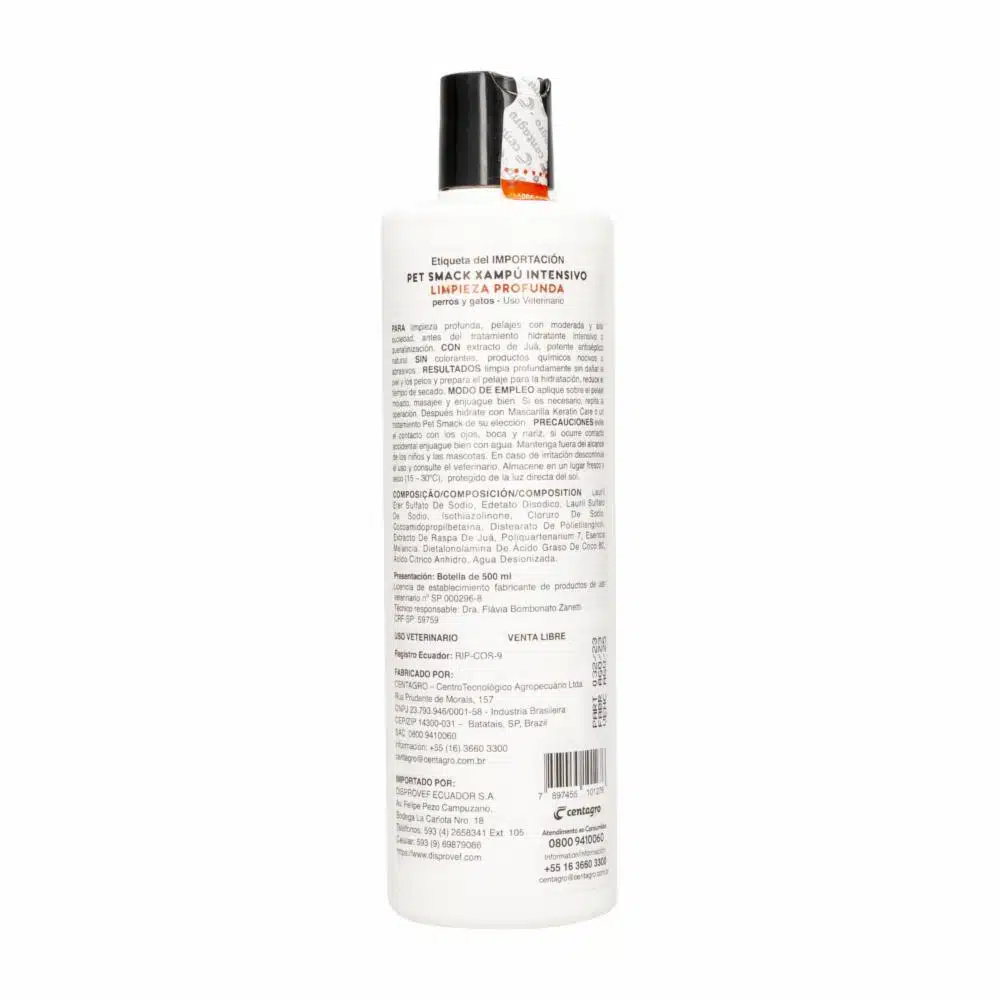 El Shampoo Para Mascota Cuidado Intensivo Pet Smack En Presentación De 500 Ml Es Un Producto Diseñado Para Proporcionar Un Cuidado Profundo Y Reparador Al Pelaje De Tu Mascota. Su Fórmula Intensiva Ayuda A Nutrir Y Fortalecer El Pelaje, Dejando A Tu Perro O Gato Con Un Pelaje Limpio, Suave Y Saludable