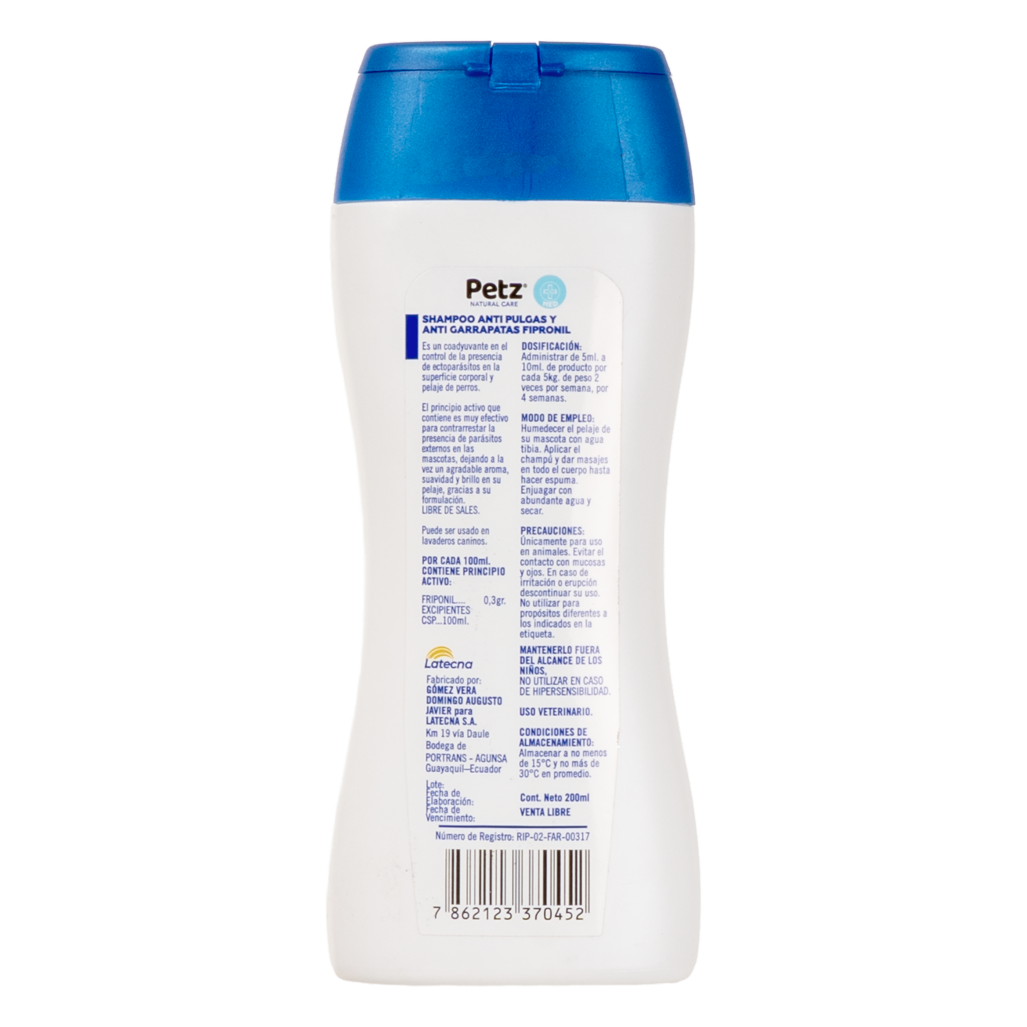- Protege a tu mascota mientras la limpias con el shampoo PETZ con Fipronil. Eficaz, seguro y recomendado para cuidado antipulgas