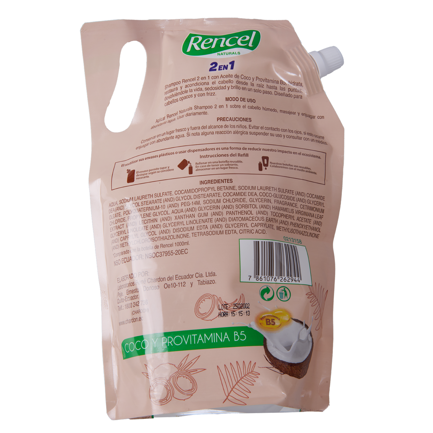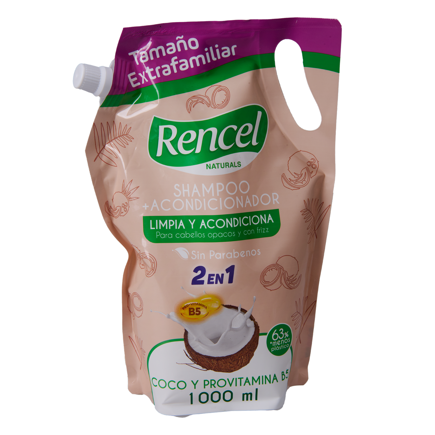 Shampoo Y Acondicionador 2 En 1 Con Coco Y Provitamina B5 Para Cabellos Opacos Y Con Frizz RENCEL 1000 Ml – RENCEL. Disponible en nuestros locales. Precio y stock pueden variar según la tienda.