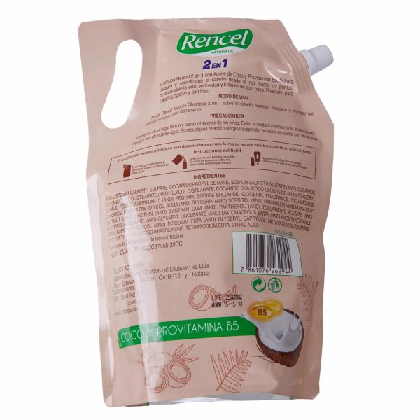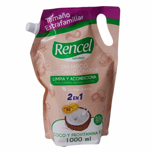 Shampoo Y Acondicionador 2 En 1 Con Coco Y Provitamina B5 Para Cabellos Opacos Y Con Frizz RENCEL 1000 Ml