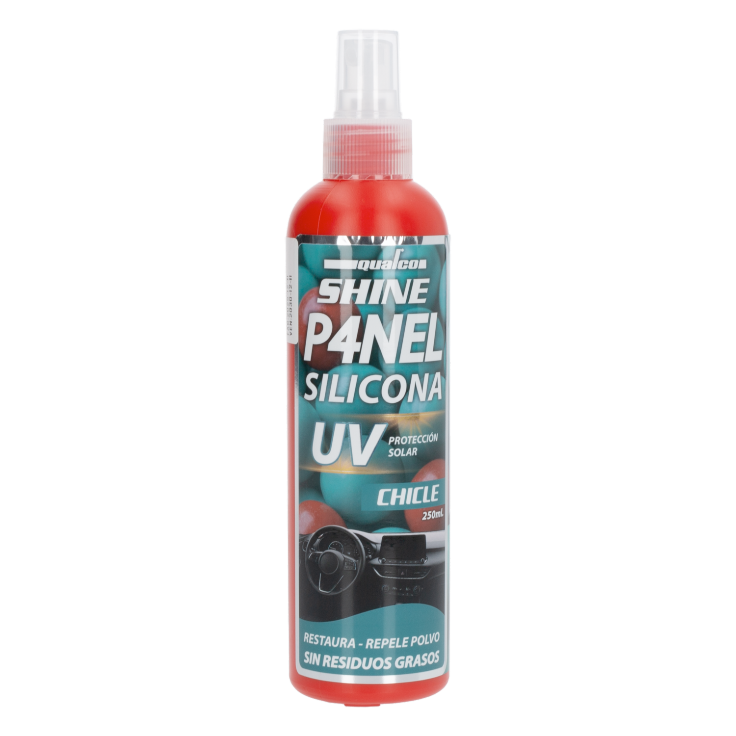 - Silicona QUALCO Fragancia Chicle: protección y aroma agradable para interiores de auto. Aplicación sencilla y acabado profesional
