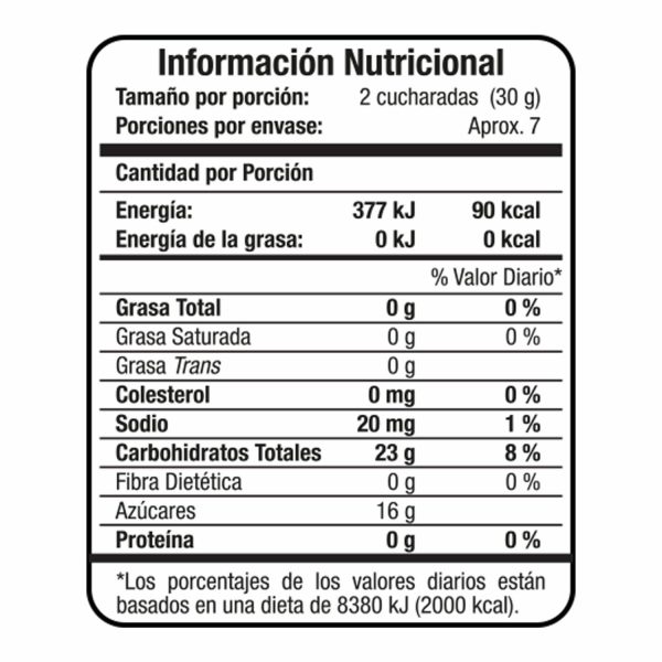 Jarabe dulce, con sabor a chocolate, ideal para acompañar fruta picada, postres y helados.  Ideal para repostería y decoración
