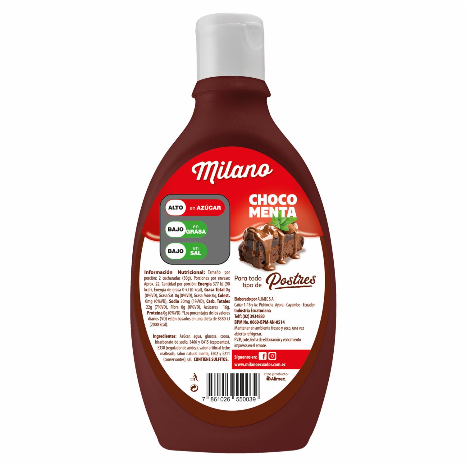 consultando preciosSirope Sabor A Choco Menta MILANO 650 G – MILANO. Disponible en nuestros locales. Precio y stock pueden variar según la tienda.