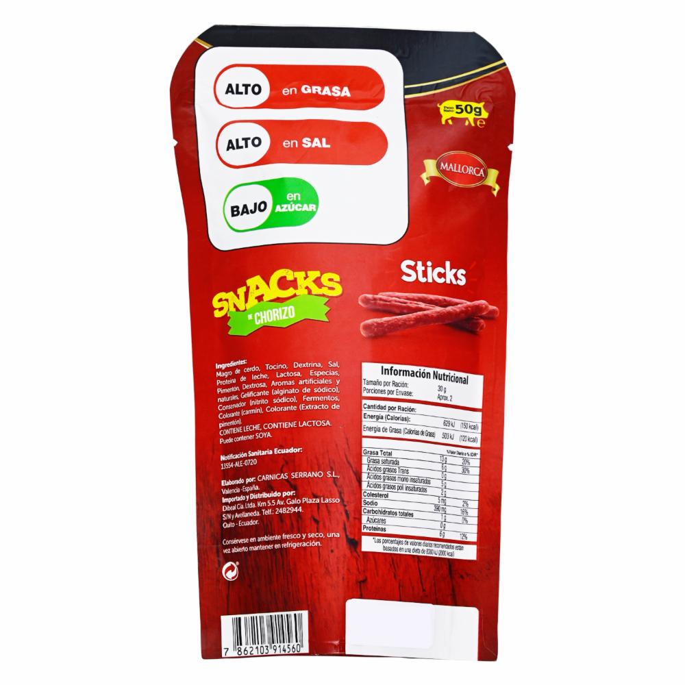 Snack De Chorizo Sin Gluten MALLORCA 50g – MALLORCA. Disponible en nuestros locales. Precio y stock pueden variar según la tienda.
