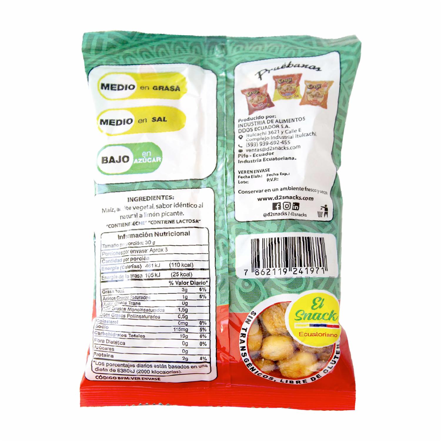 - El Snack maíz Frito Crocante Sabor A Limón Picante, Libre De Gluten Y Transgénicos, Con Sabores Únicos Y Deliciosos