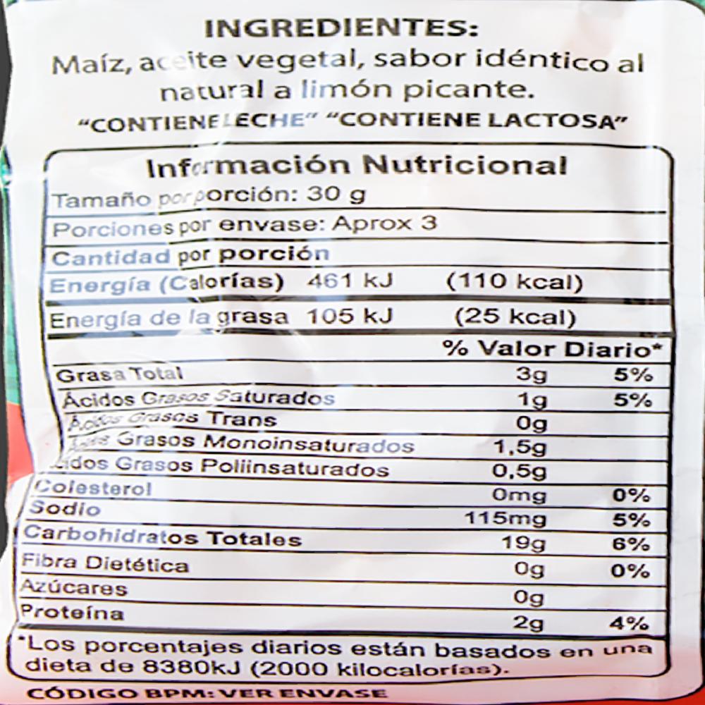 El Snack maíz Frito Crocante Sabor A Limón Picante, Libre De Gluten Y Transgénicos, Con Sabores Únicos Y Deliciosos