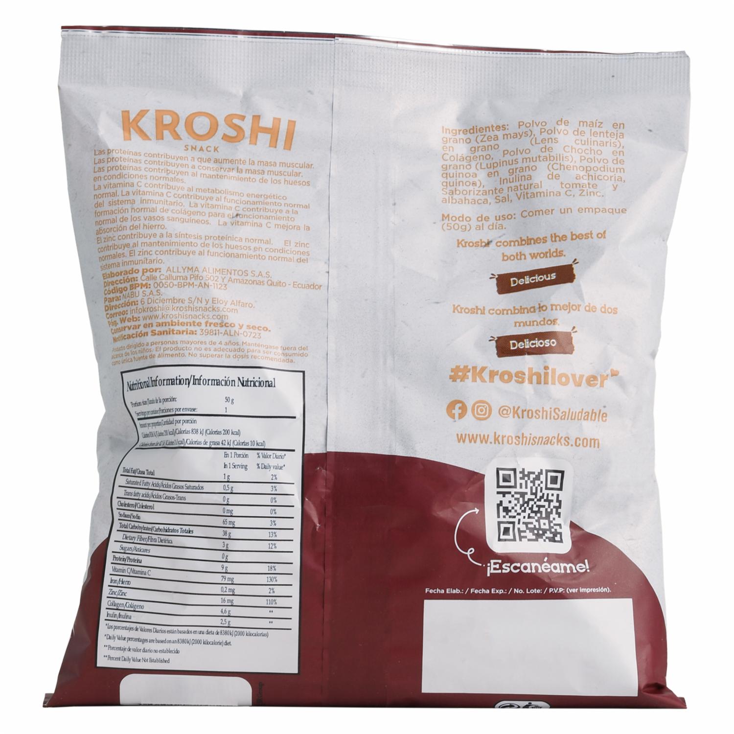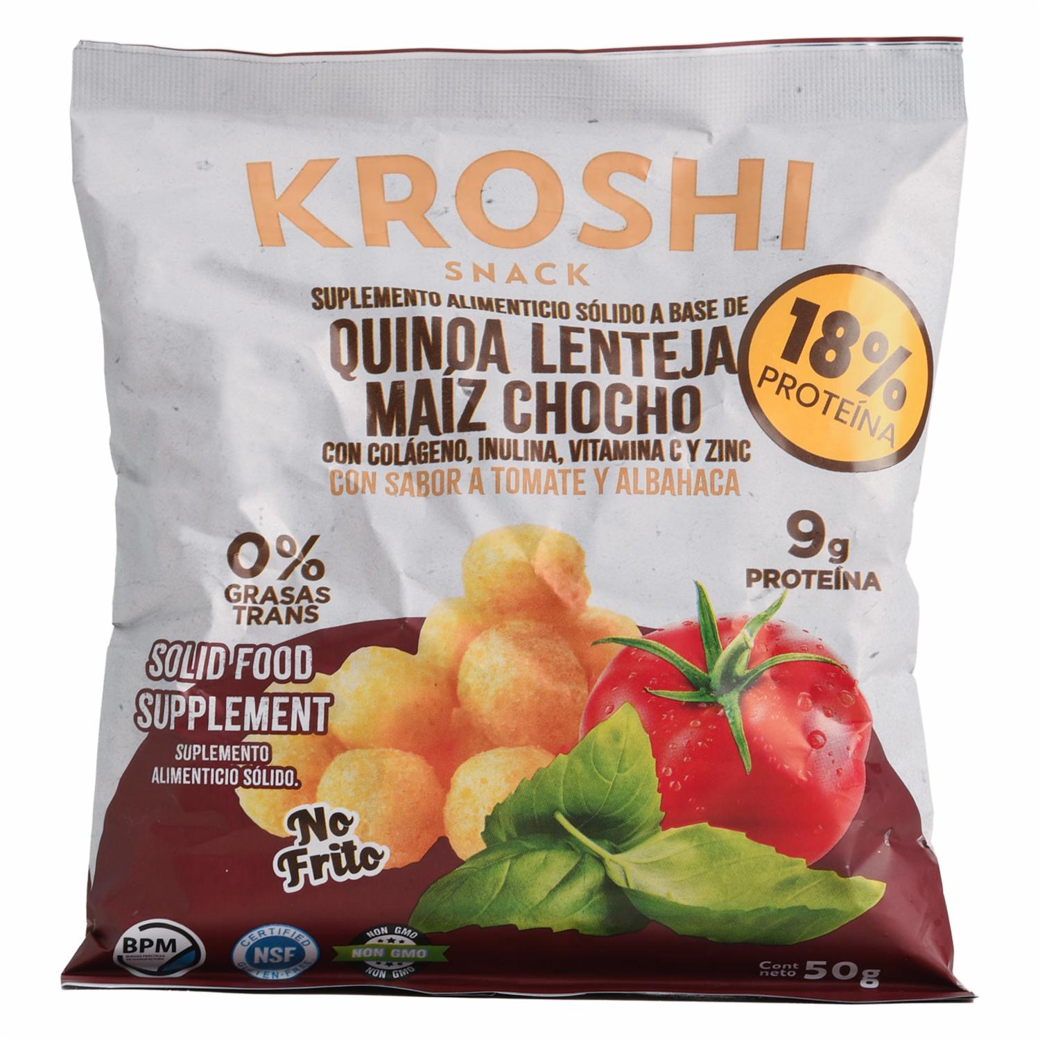 Snack Nutritivo Quinoa Lenteja Maíz Y Chocho Sabor A Tomate Y Albahaca KROSHI 50 G