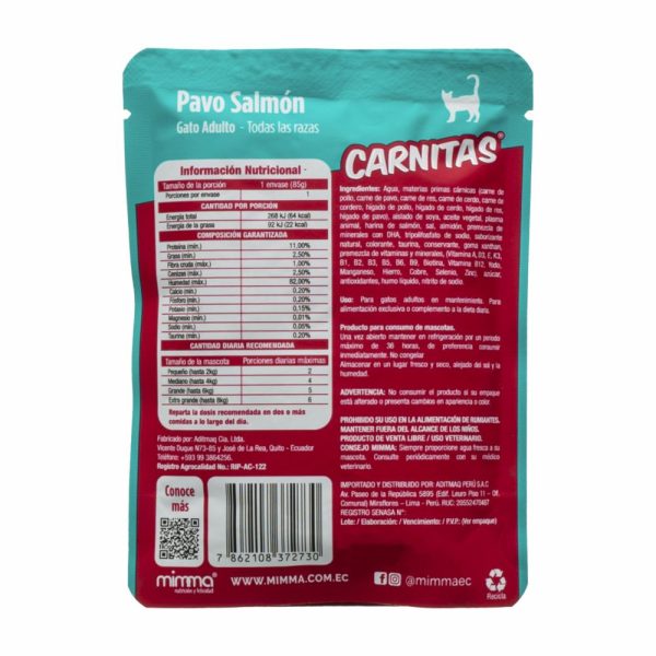 Snack Para Gatos Adultos Todas Las Razas Trocitos En Salsa Pavo Salmón CARNITAS 85 G