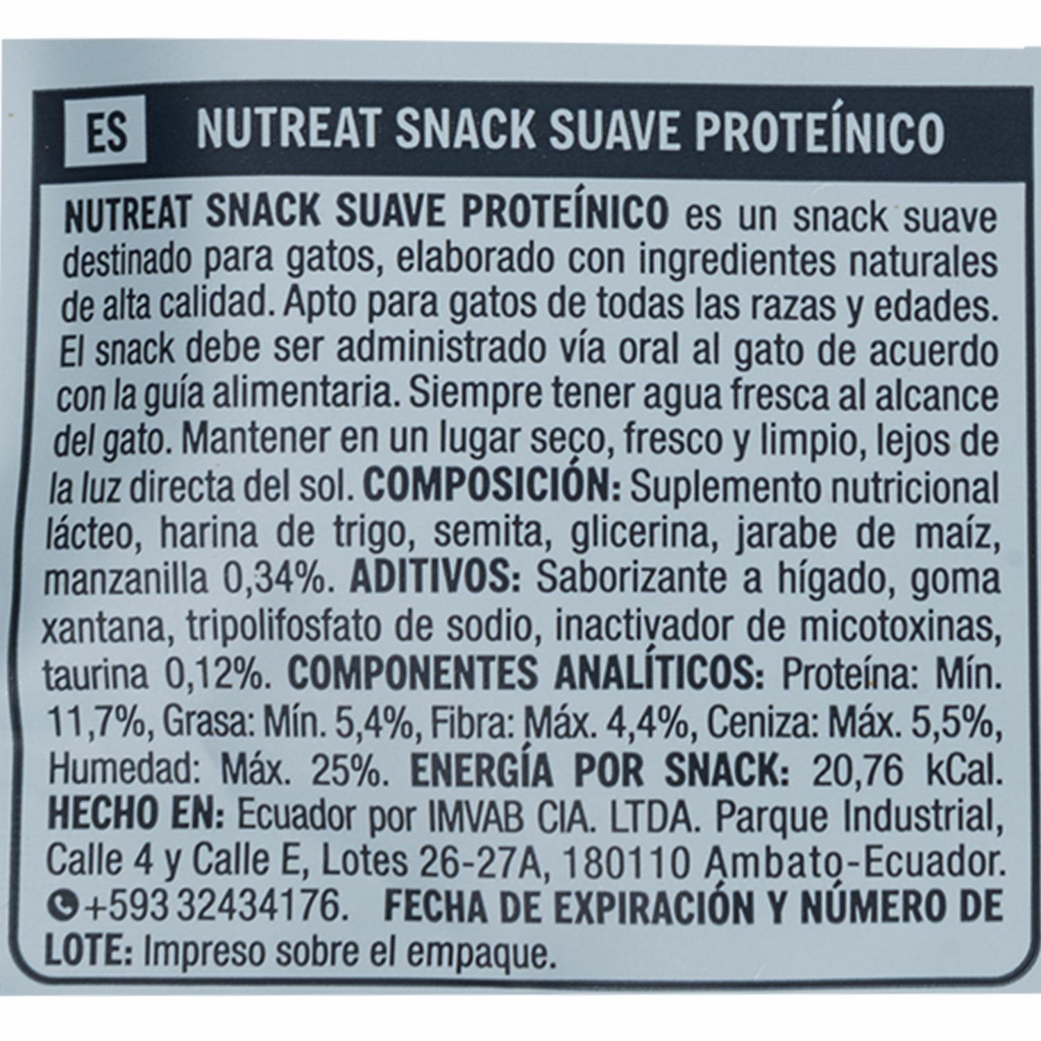 Snack Para Gatos Proteínico NUTREAT 80 G – NUTREAT. Disponible en nuestros locales. Precio y stock pueden variar según la tienda.