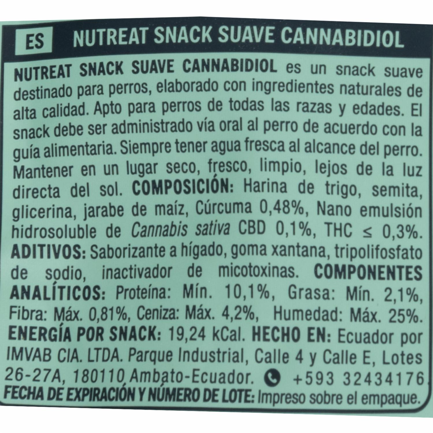 - El Snack para Perro Nano CBD de NUTREAT está formulado para brindar bienestar natural, ayudando a reducir el estrés y la ansiedad. Ideal para momentos de cambio, paseos o simplemente como un premio delicioso