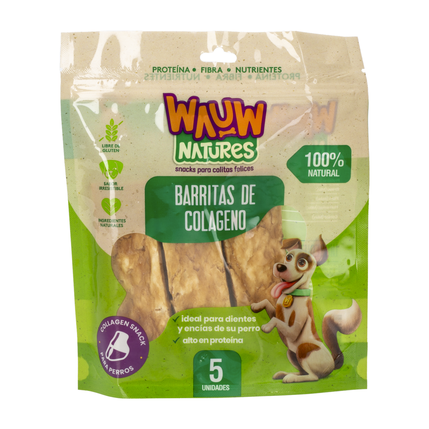 - Las Barritas de Colágeno WAUW son un delicioso y nutritivo snack para perros, ideal para satisfacer su necesidad de masticar mientras contribuyen a su bienestar general. Estas barritas están formuladas para ser una opción saludable y sabrosa para tu mascota