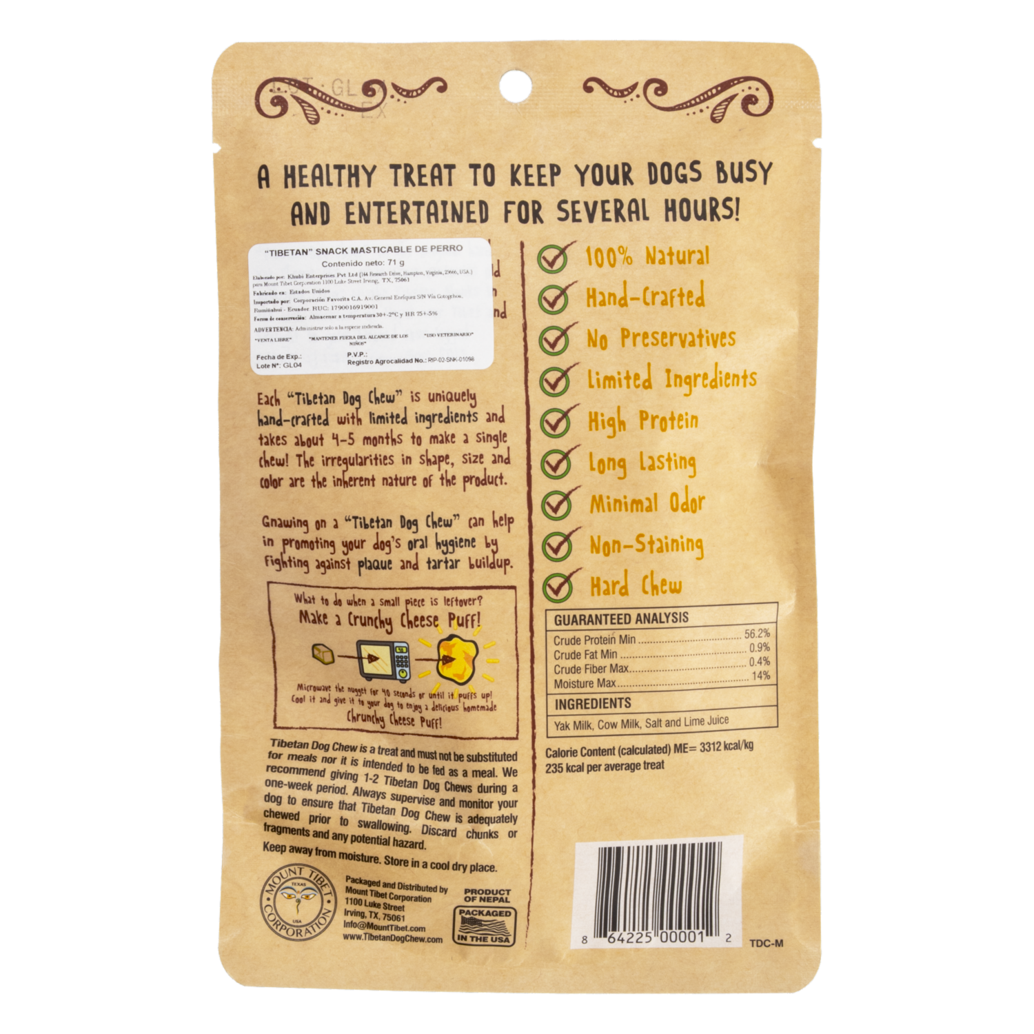 El Snack para Perros Chew Cheese Dog Treats 70.87 g es una deliciosa y saludable recompensa para tu mascota. Elaborado con auténtico queso, ofrece un sabor irresistible y una textura que ayuda a fortalecer los dientes. Ideal como premio o entretenimiento diario, brinda nutrición y diversión en cada bocado
