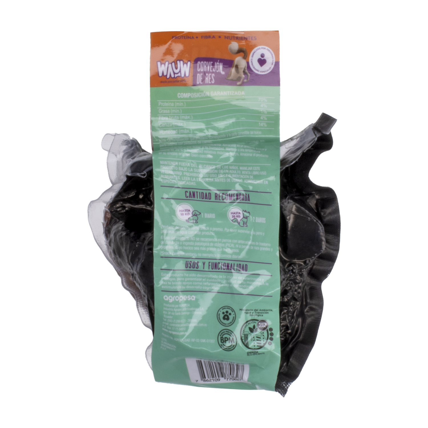 - El corvejón de res es una excelente opción de snack para perros, proporcionando una fuente natural de proteínas y entretenimiento prolongado. Ideal para mantener a tu mascota feliz y saludable