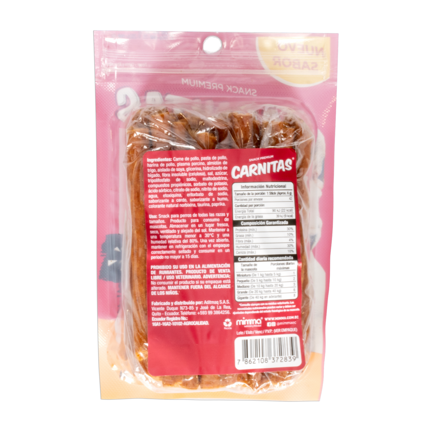 - Delicioso stick de pollo que proporciona proteína de alta digestibilidad. Alto contenído de proteína, cada stick contiene un mínimo de 30% de proteína