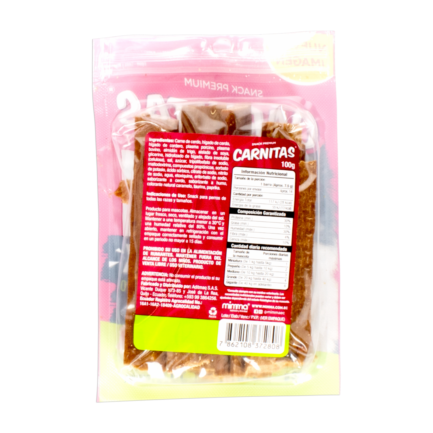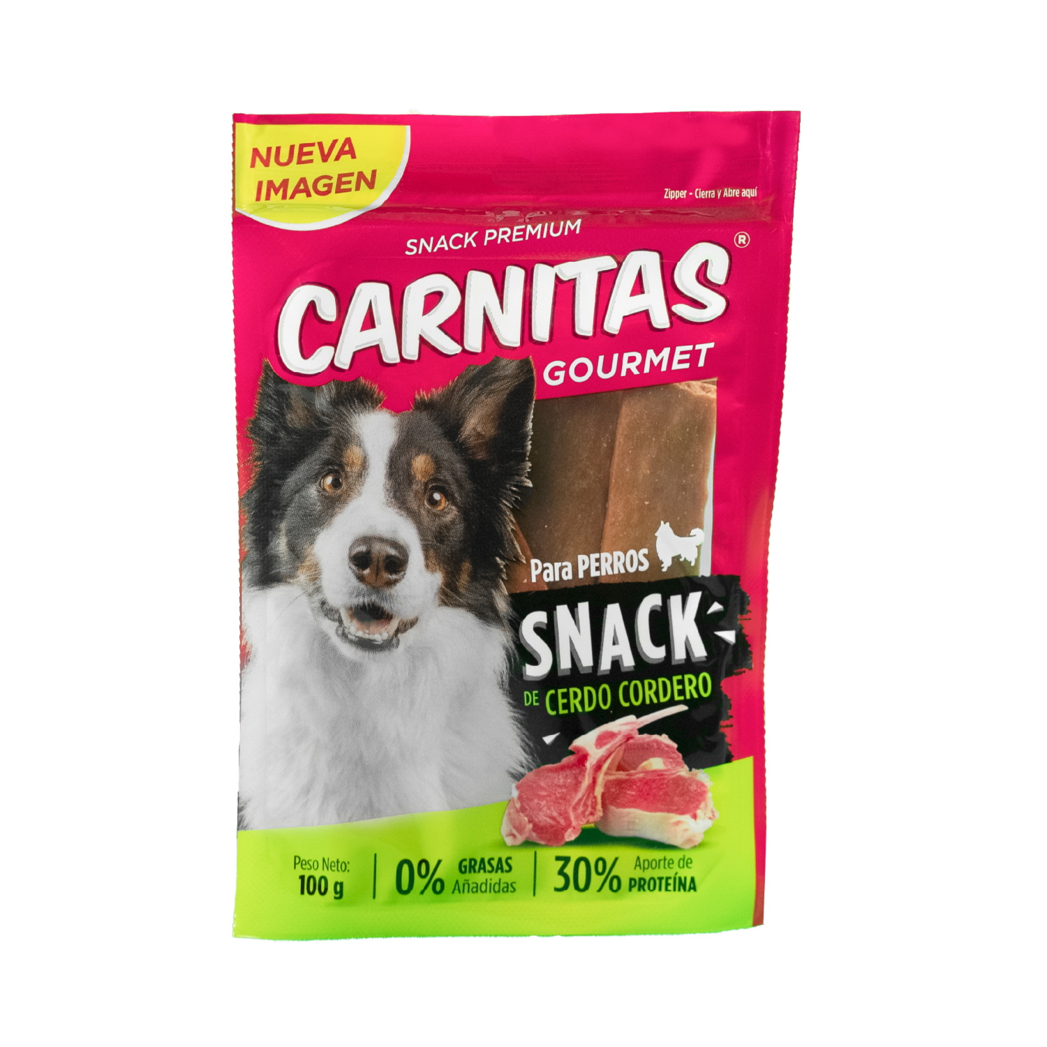 Snack Para Perros Gourmet De Cerdo Y Cordero CARNITAS 100 G – CARNITAS. Disponible en nuestros locales. Precio y stock pueden variar según la tienda.