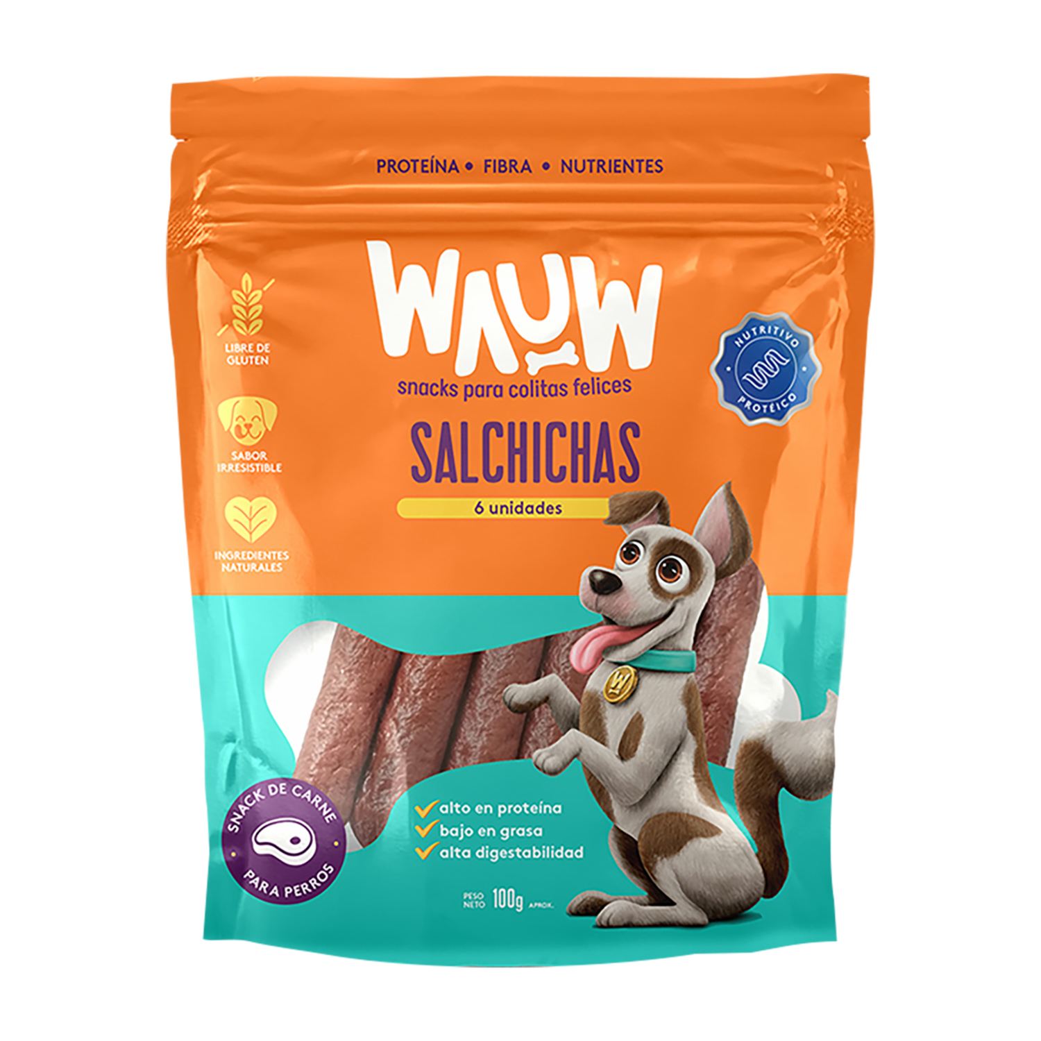 Snack Para Perros Salchichas Masticables WAUW 100 G – WAUW. Disponible en nuestros locales. Precio y stock pueden variar según la tienda.