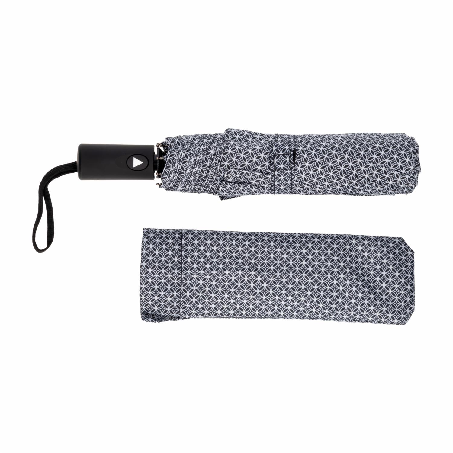 Protégete de la lluvia o de los fuertes rayos del sol y la radiación con este práctico paraguas. Gracias a su mecanismo, el paraguas puede abrirse o cerrarse según la necesidad