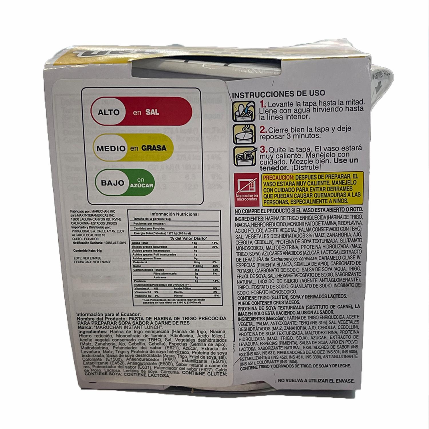 Sopa De Fideo De Carne MARUCHAN 64 g – MARUCHAN. Disponible en nuestros locales. Precio y stock pueden variar según la tienda.
