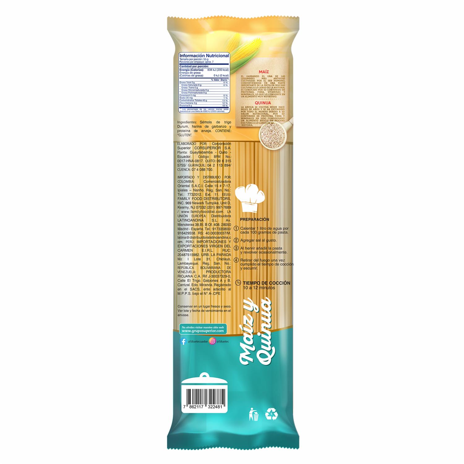 Siluet Spaghetti de quinua y maiz es el aliado perfecto para aquellos que desean disfrutar de una experiencia de deliciosa y nutritiva. Transforma tus platos clásicos con este producto versátil que te invita a explorar nuevos horizontes culinarios