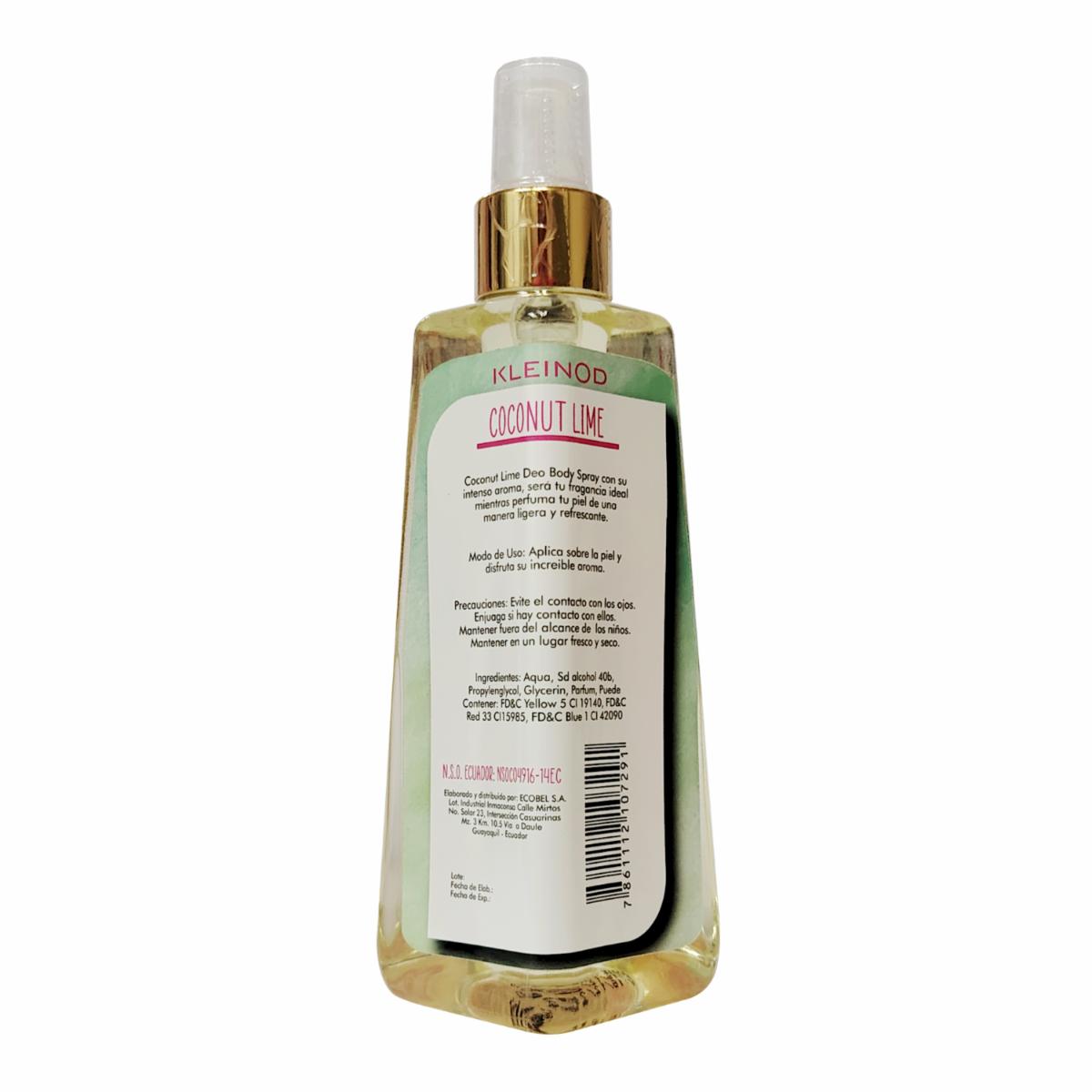 • Body Spray Kleinod Coconut Lime ofrece una explosión tropical y refrescante con notas de coco cremoso y lima vibrante