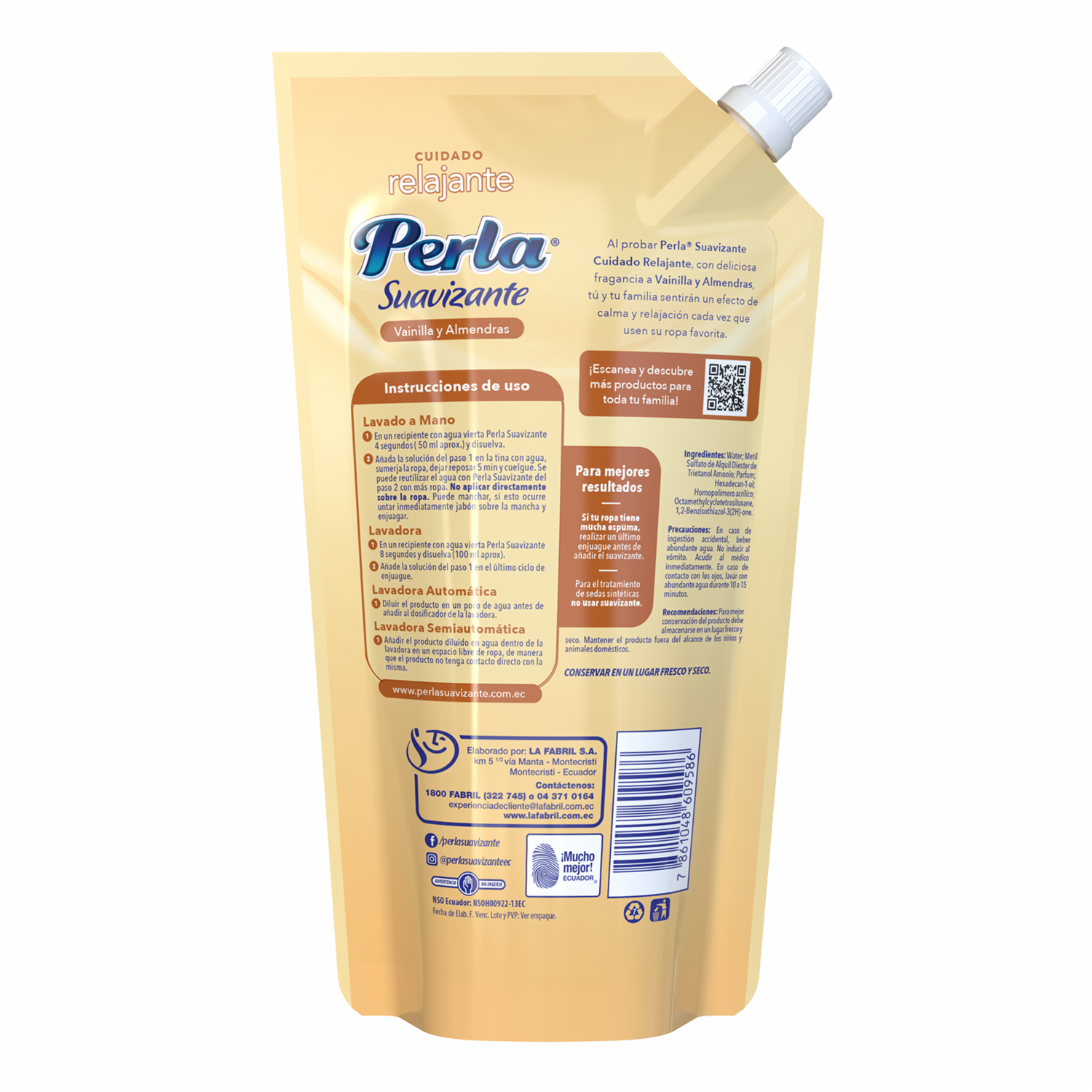 Suavizante Cuidado Relajante Vainilla Y Almendras PERLA Doypack 370 Ml
