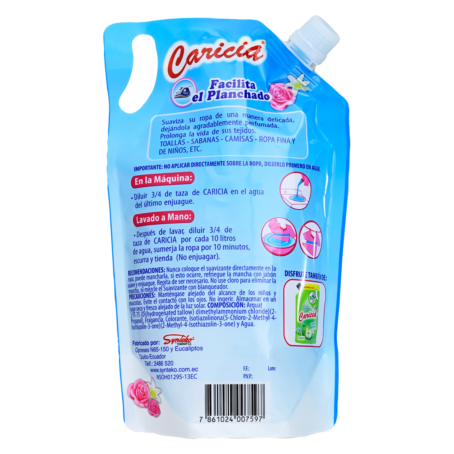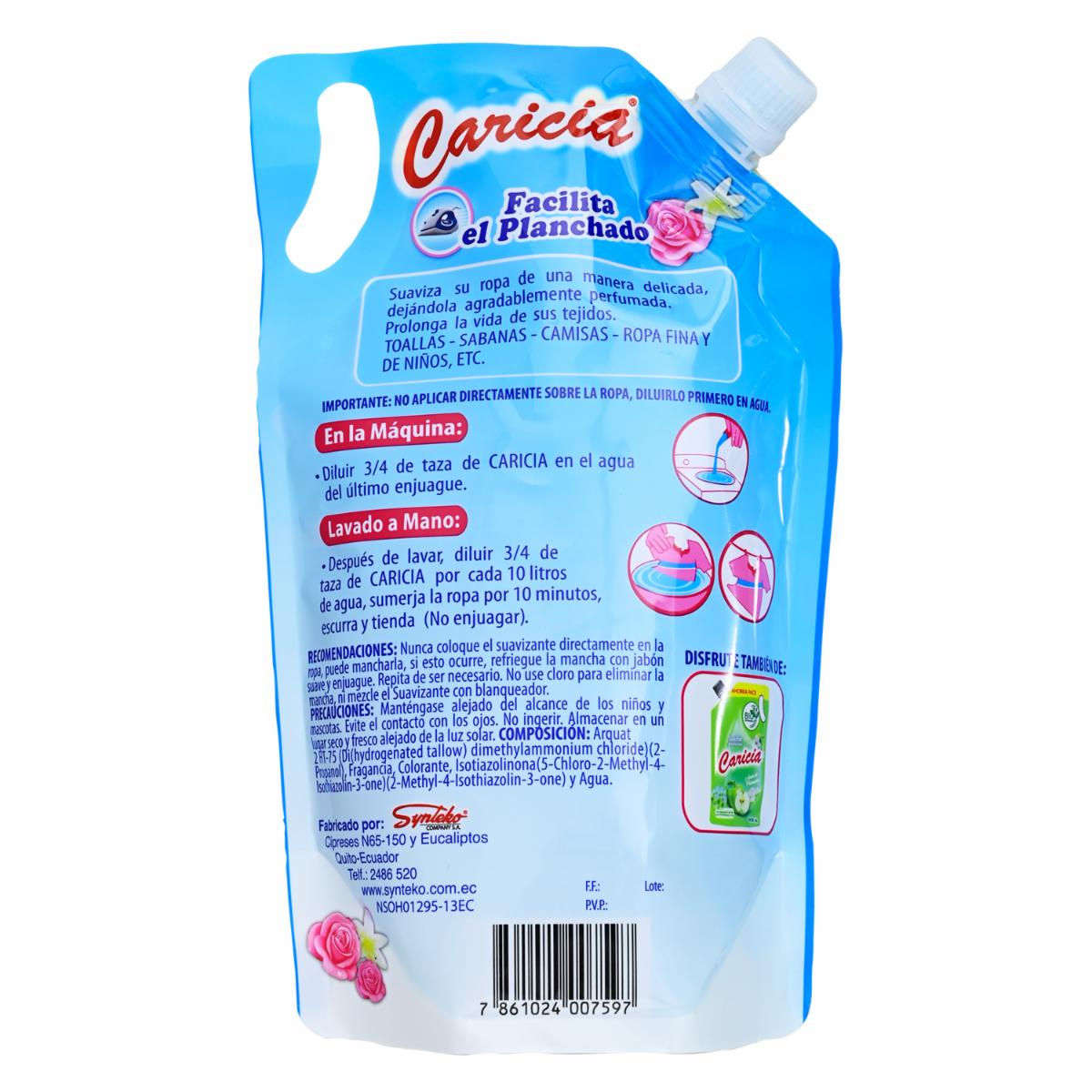 Suavizante De Telas, Fragancia Amor De Primavera Doy Pack CARICIA 900 Ml