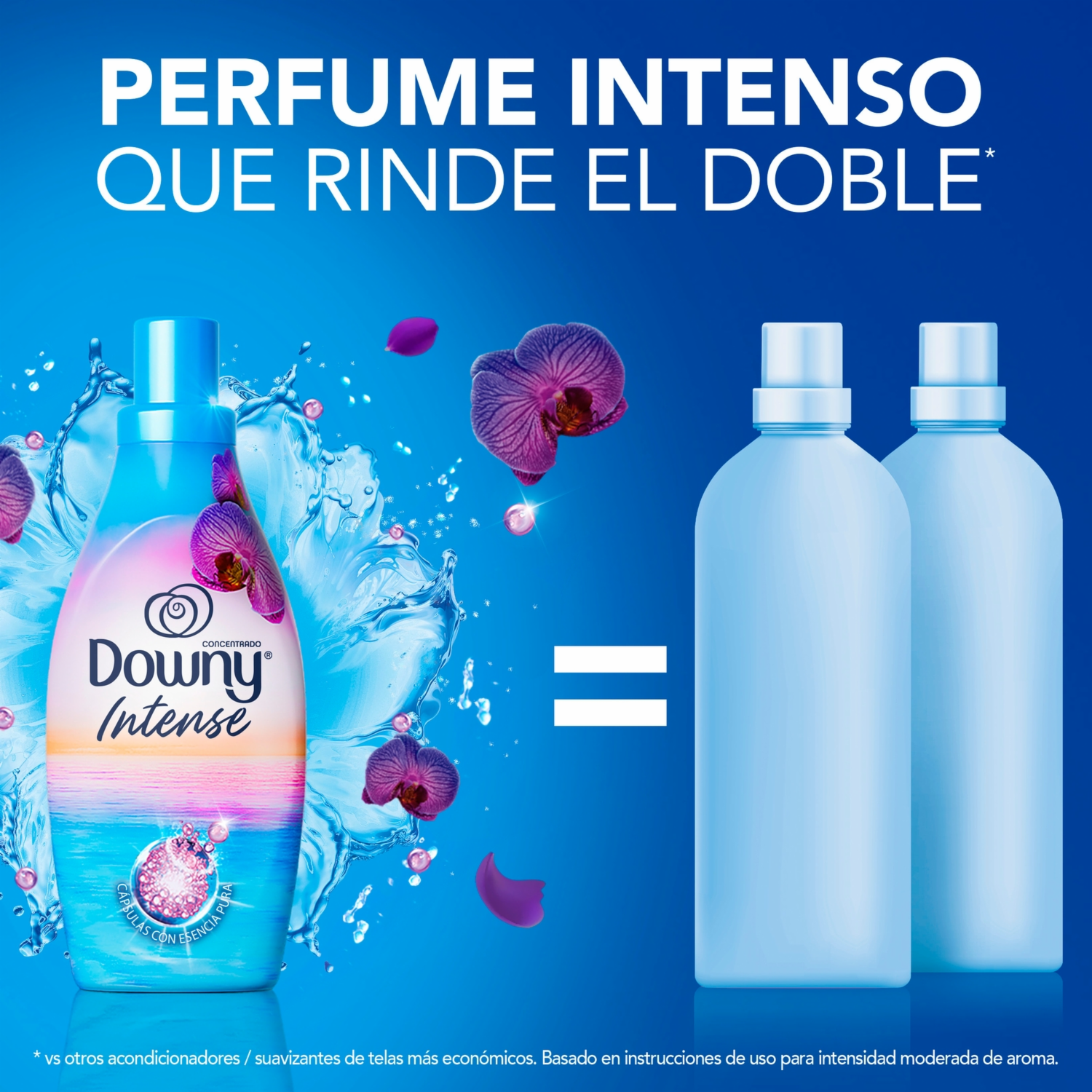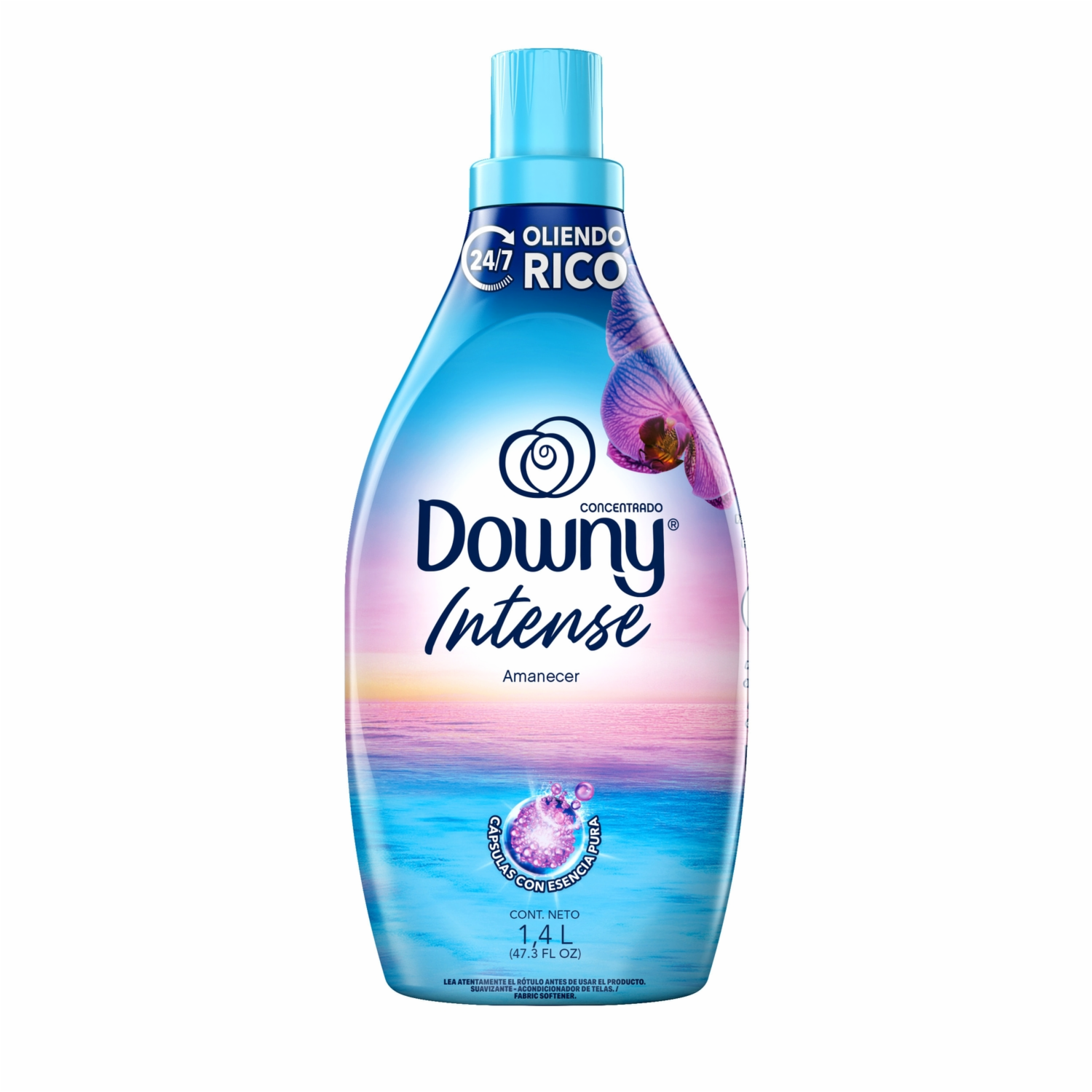 • "Descubre el suavizante de telas Downy Intense Amanecer con un perfume tan intenso y duradero que te dejará oliendo rico 24/7. Gracias a sus nuevas y mejoradas* cápsulas con esencia pura, libera perfume de manera constante, un perfume tan intenso que rinde el doble vs otros suavizantes de telas más económicos