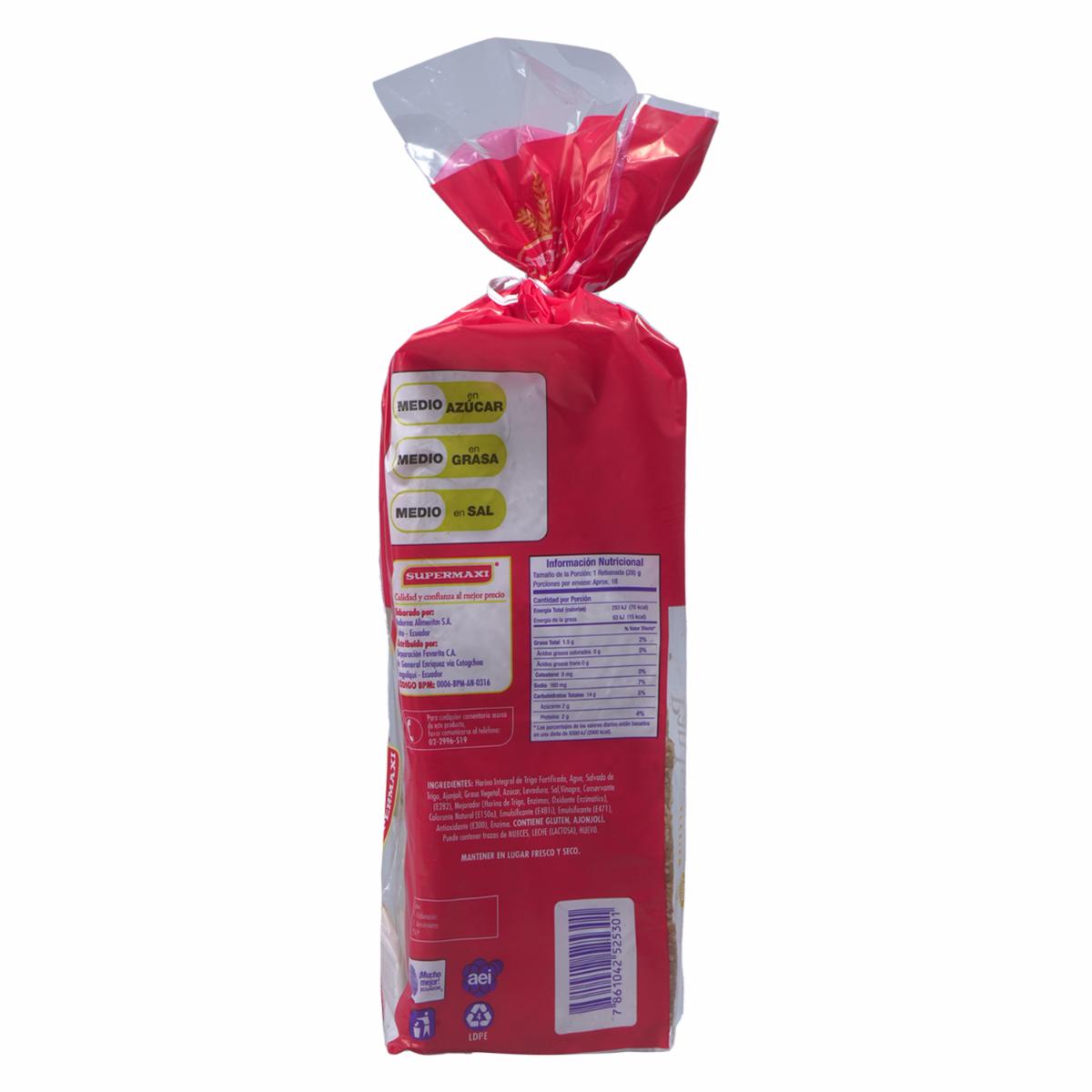 consultando preciosPan Integral SUPERMAXI 500 G – SUPERMAXI. Disponible en nuestros locales. Precio y stock pueden variar según la tienda.