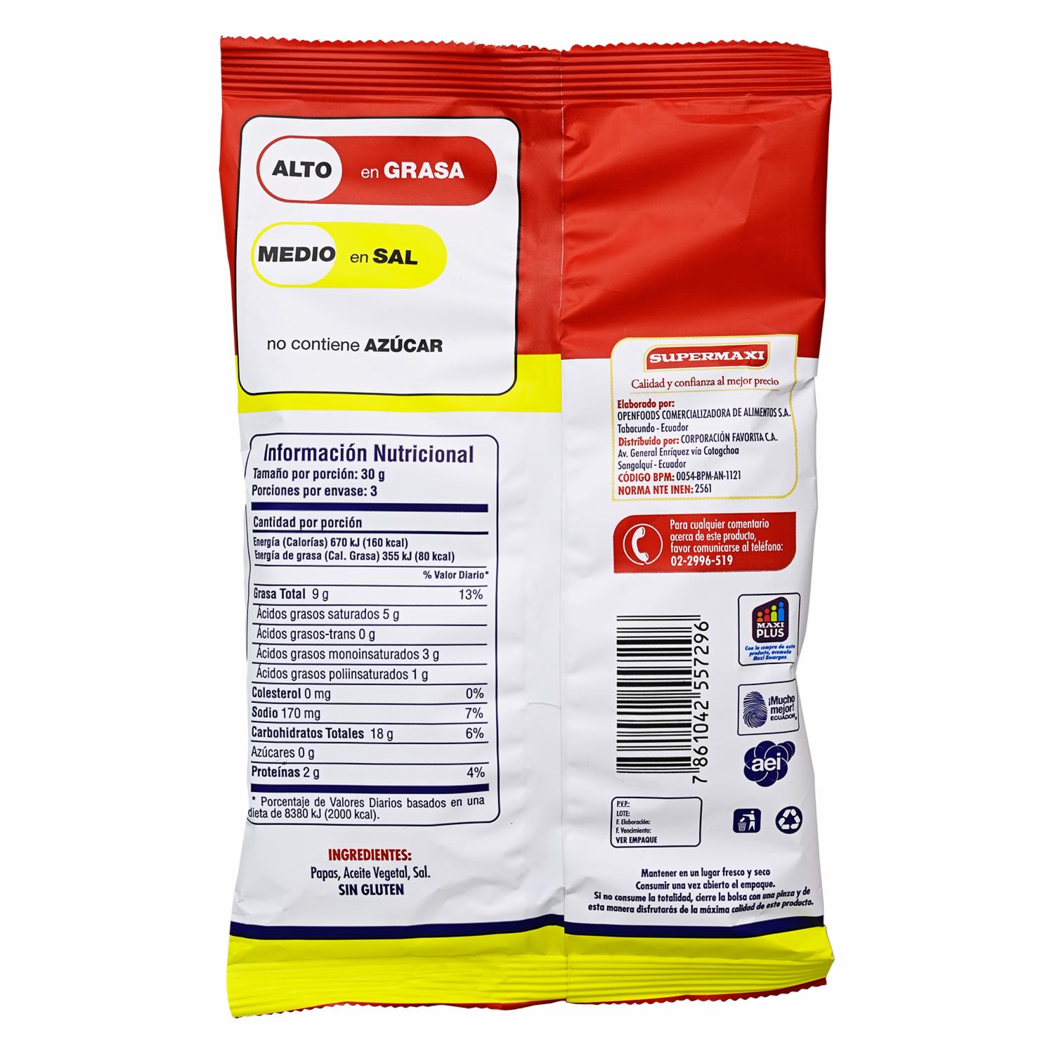 Papas Fritas Artesanales SUPERMAXI 96 G – SUPERMAXI. Disponible en nuestros locales. Precio y stock pueden variar según la tienda.