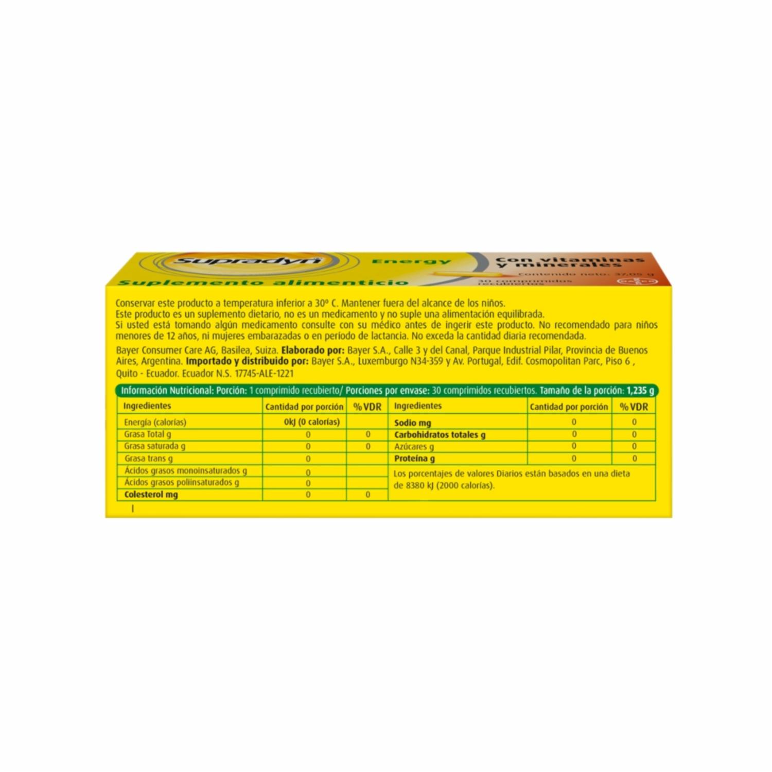 Suplemento Alimenticio Con Vitaminas Y Minerales SUPRADYN ENERGY X 30 Uds