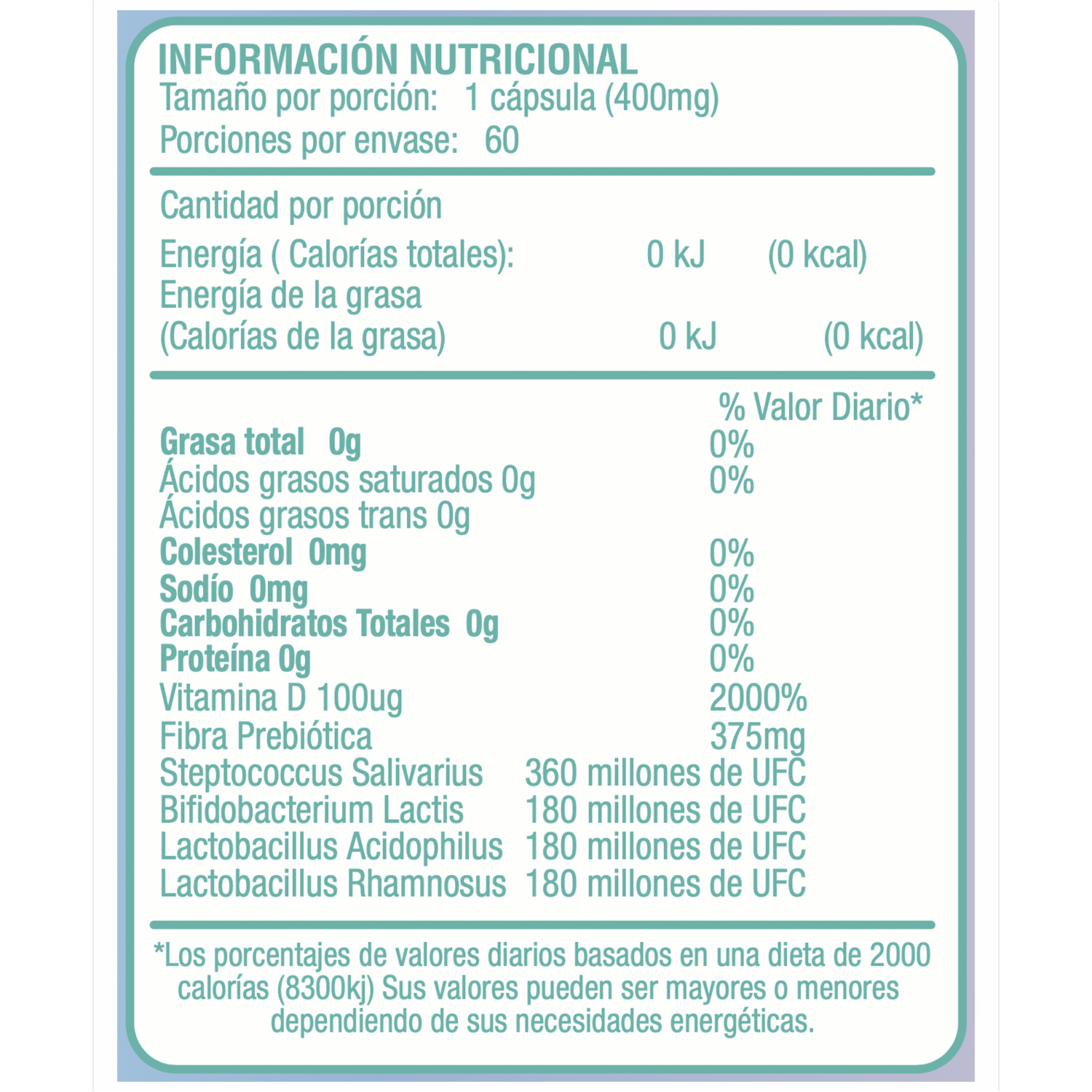 - Suplemento de fibra prebiótica y probióticos 60 cápsulas , 24g