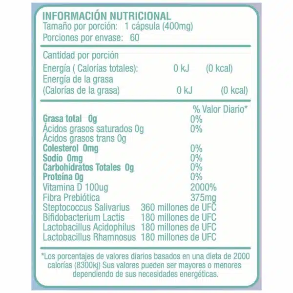 Suplemento de fibra prebiótica y probióticos 60 cápsulas , 24g