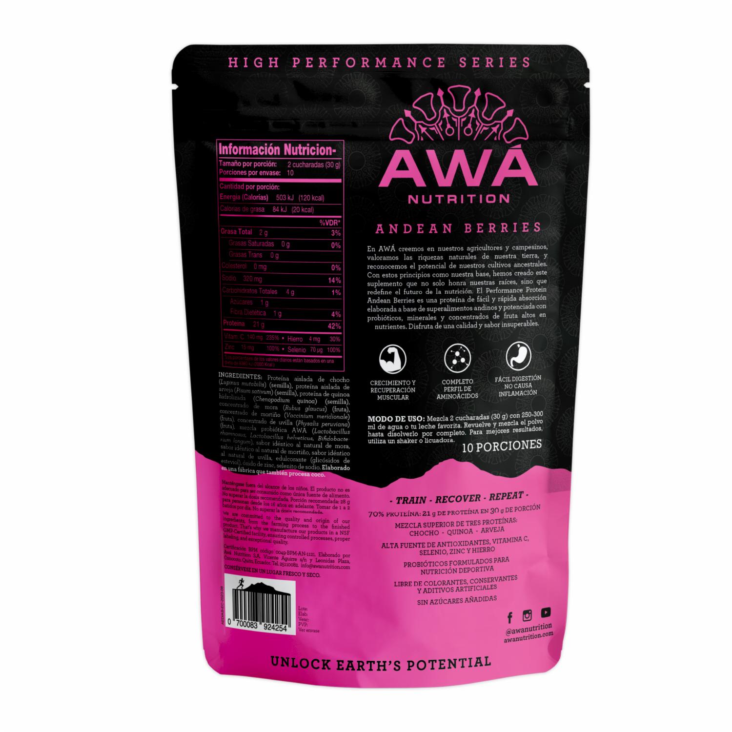Proteína En Polvo Performance Protein Mora Mortiño Uvilla Andean Berries AWA NUTRITION 300 g