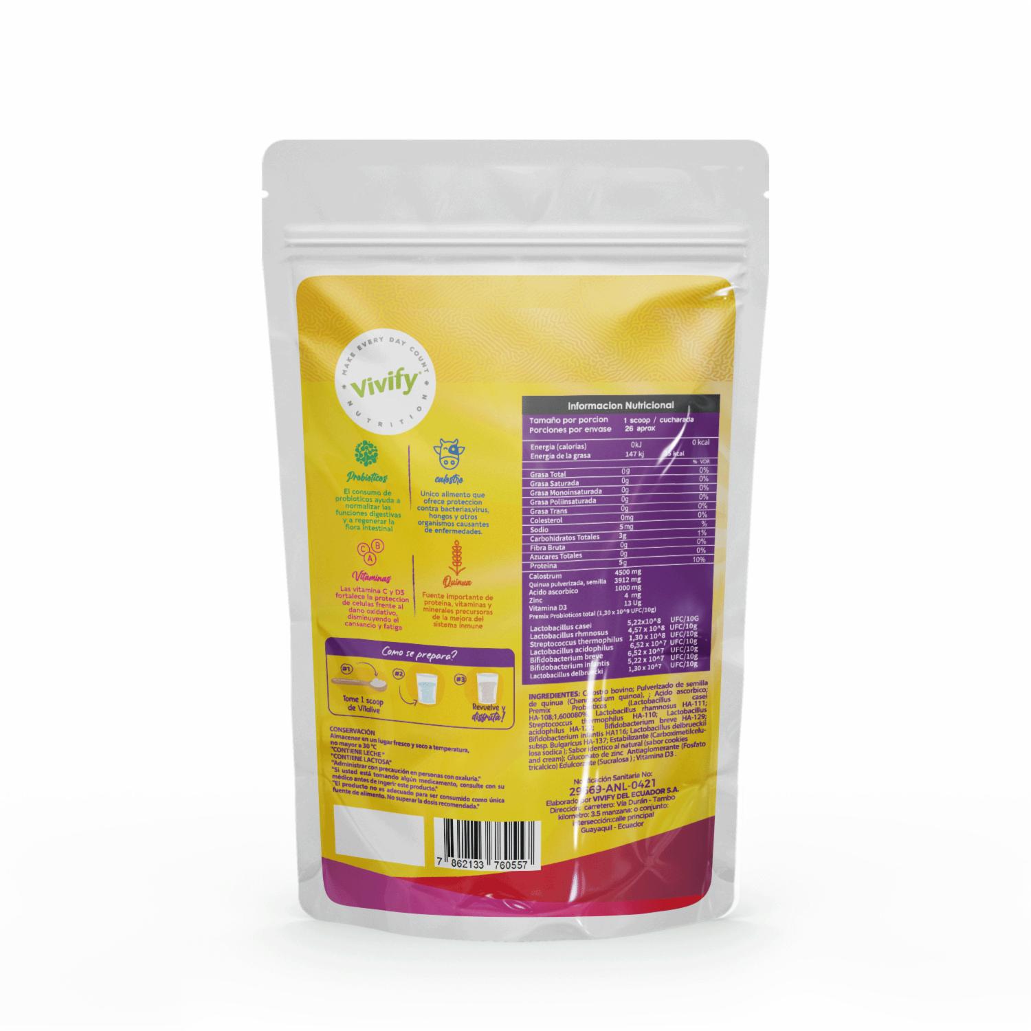 Suplemento Nutricional A Base De Calostro Sabor A Cookies & Cream VIVIFY 400 G