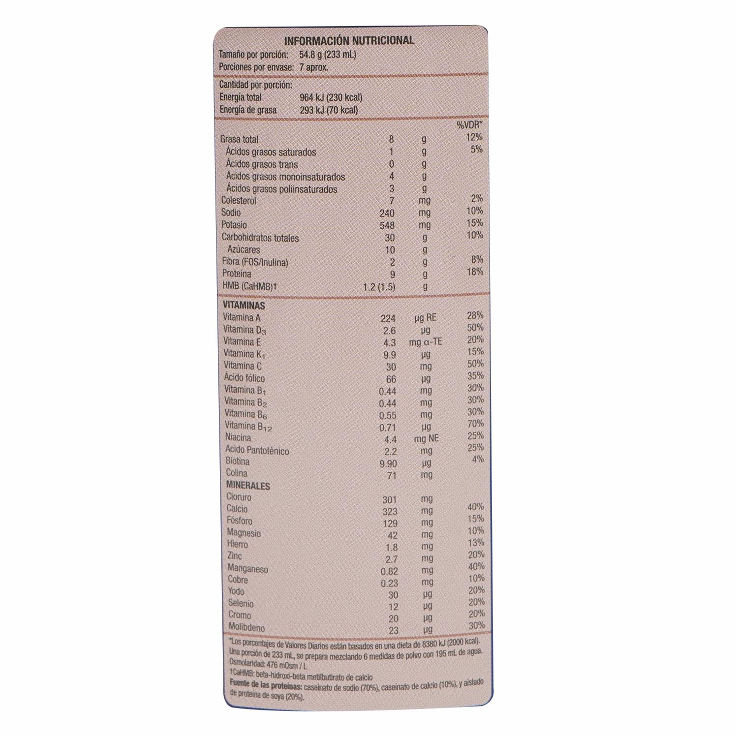 Complemento nutricional que con su combinación única de HMB*, proteína de alta calidad y 28 vitaminas y minerales apoya al mantenimiento y recuperación de masa muscular brindando fuerza, vitalidad y actividad