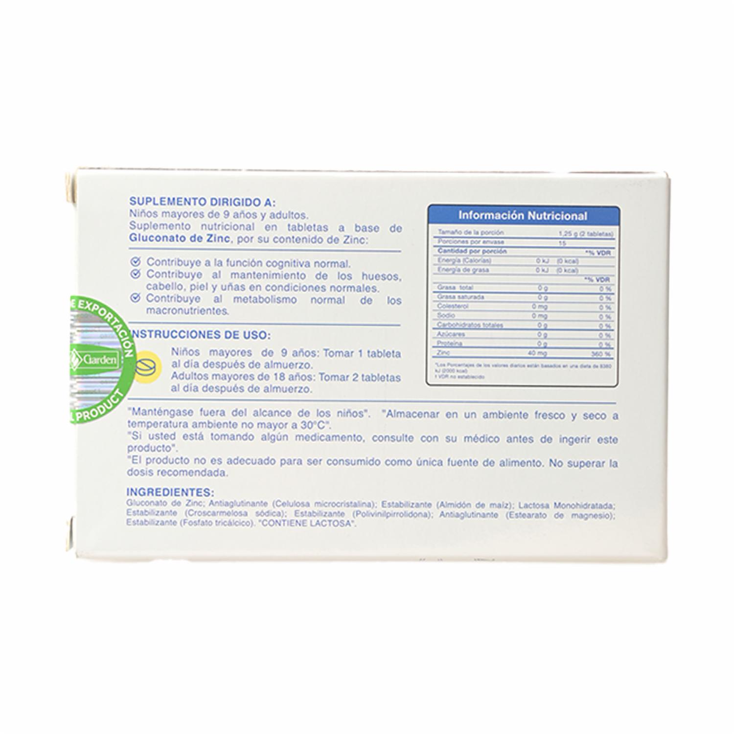 Suplemento Nutricional Gluconato Y Zinc NATURE’S GARDEN 30 Unidades