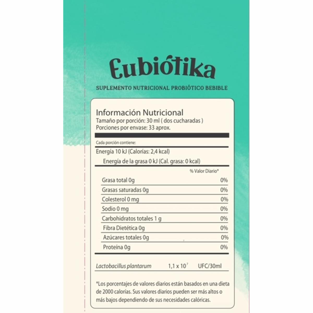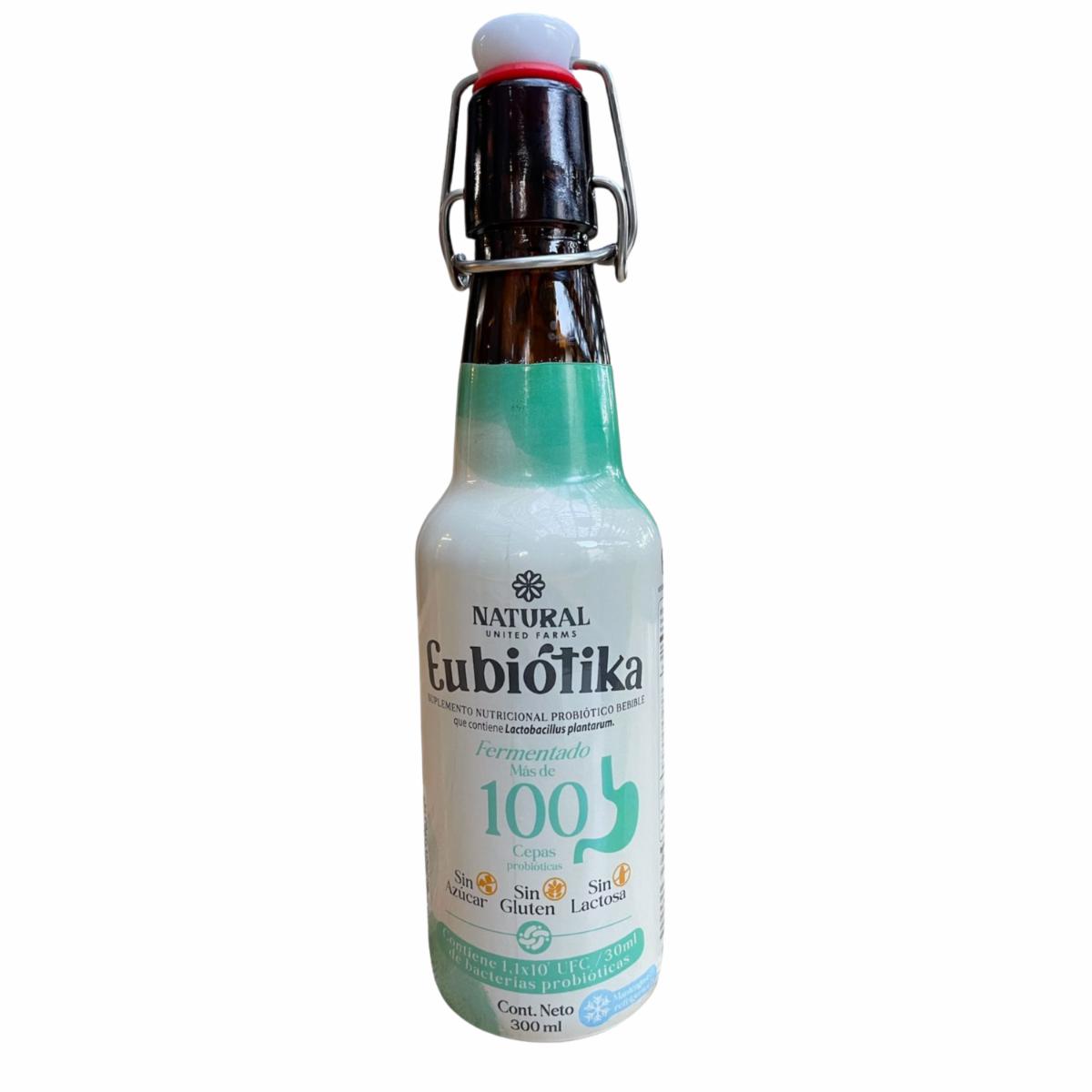 - Eubiótika es un suplemento probiótico líquido que cuida tu salud digestiva con prebióticos, probióticos y postbióticos. Ayuda a aliviar gastritis, colon irritable y reflujo, además de fortalecer tu sistema inmunológico y mejorar la absorción de nutrientes. Con más de mil millones de UFC y 100 cepas vivas, se toma fácil solo o en tu bebida favorita, sin azúcar, gluten ni lactosa. Bienestar natural y completo cada día