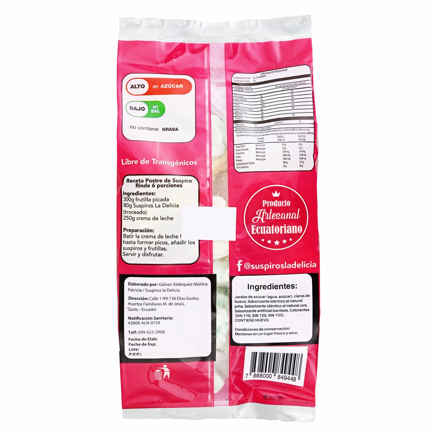 Disfruta de los suspiros de colores, una deliciosa y ligera opción para tu paladar. Hechos con ingredientes de calidad, su textura crujiente y sabor dulce los convierten en el acompañante ideal para cualquier evento, fiesta o simplemente para disfrutar en casa