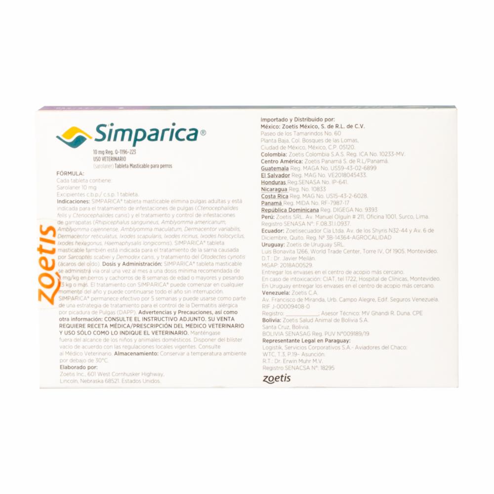 Tableta Antipulgas Para Perros De 2.5 A 5 Kg SIMPARICA Unidad
