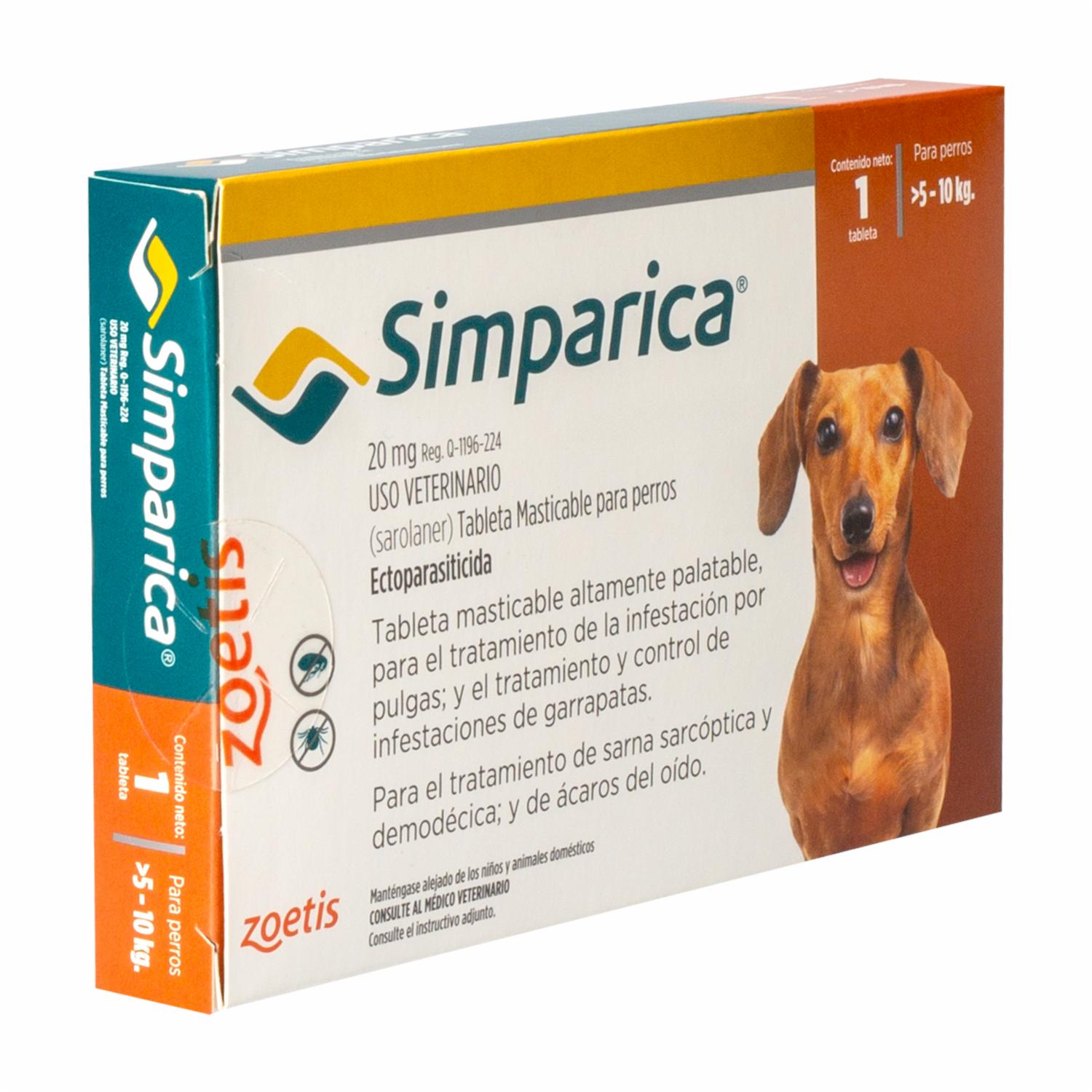 Tableta Antipulgas Para Perros De 5 A 10 Kg SIMPARICA 20 Mg