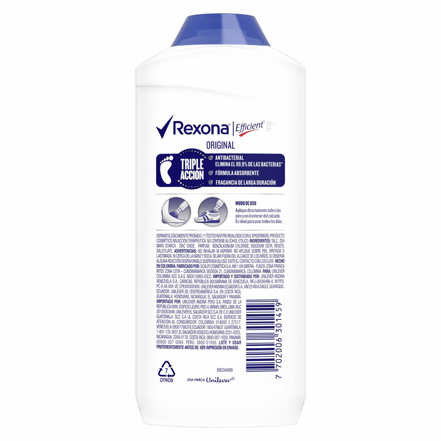 - Máxima protección para tus pies, protegiendote del mal olor, gracias a su triple acción: antibacterial, fórmula absorbente y fragancia de larga duración