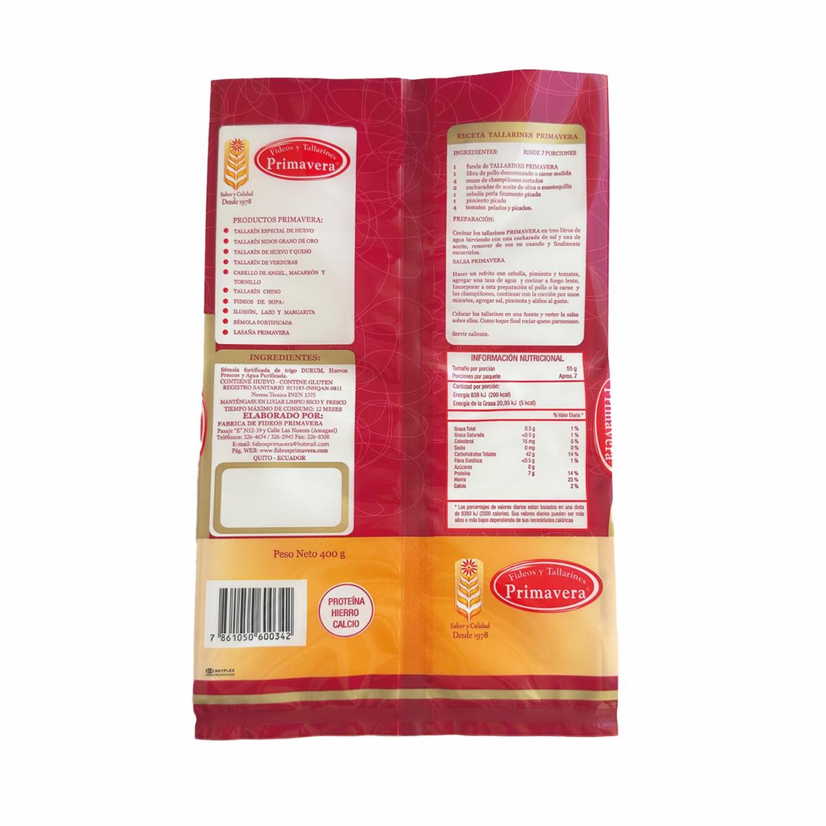 Tallarín Fetuccine Especial De Huevo De Sémola De Trigo Durum FIDEOS Y TALLARINES PRIMAVERA 400 G
